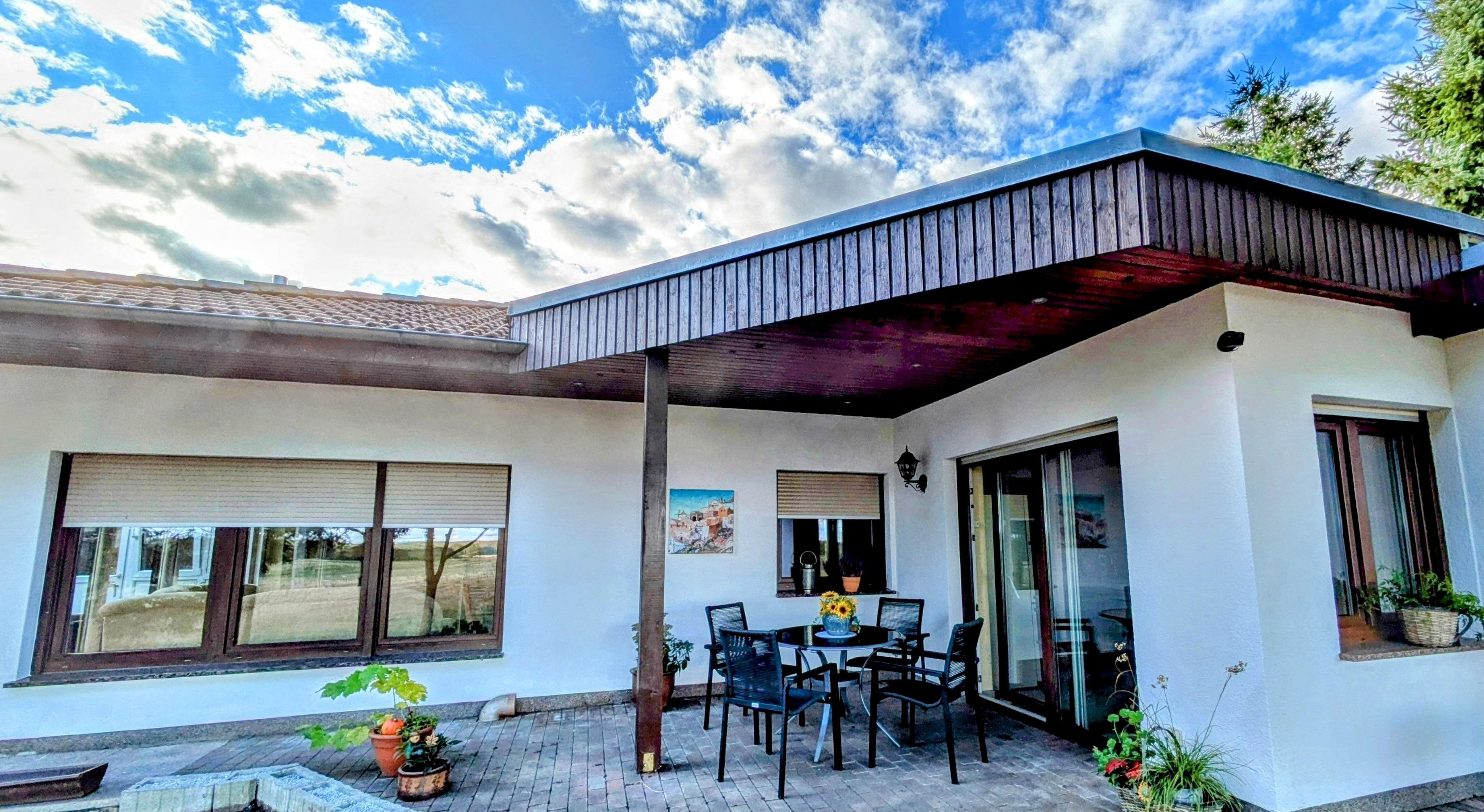 Das Ferienhaus liegt auf dem Grundstück des Vermieters , ist kpl. unabhängig im Zugang und Versorgung ( Wasser ,Abwasser,Heizung )