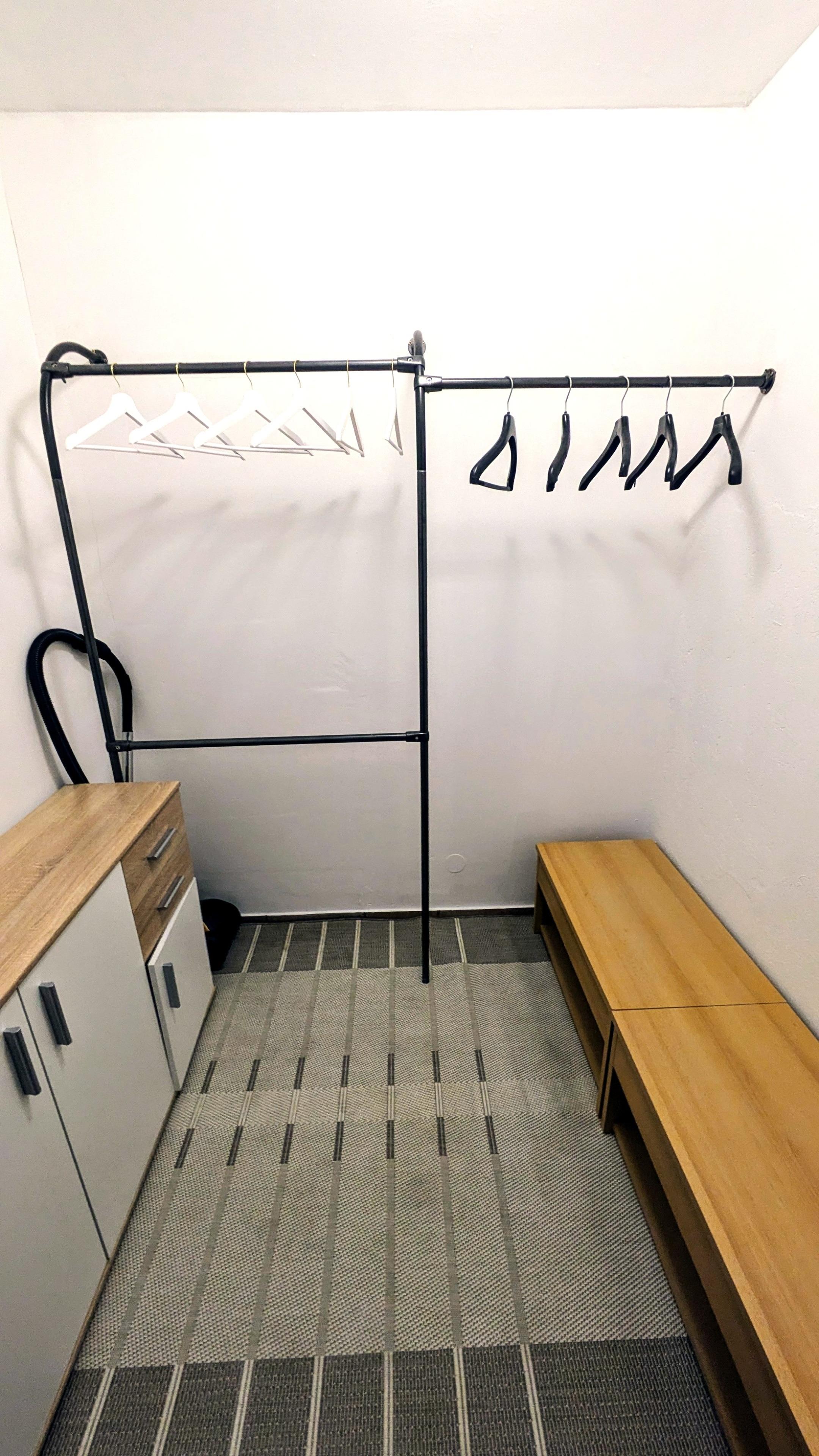 Neben dem 2. Schlafzimmer befindet sich noch ein begehbarer Wandschrank mit Ablagen für Kleidung , Wäsche , Koffer/Taschen.