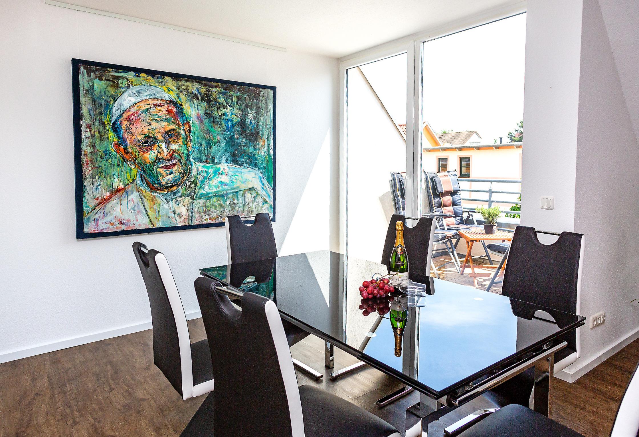 Direkt am Yachthafen von Waren, finden Sie eine einzigartige Ferienwohnung. Auf zwei Etagen verteilt ist diese Wohnung perfekt für bis zu 6 Personen geeignet. In der unteren Etage befindet sich das Duschbad sowie eines der zwei Schlafzimmer. besonders jedoch ist das Wohnzimmer mit Esstisch und hervorragender Küche, bei deren Einricht an alles gedacht wurde. Nicht nur modern, sondern durchdacht ist das Gesamtkonzept der Einrichtung. Ganz besonders sind die zwei Bilder, die von einem Künstler der Region geschaffen wurden.