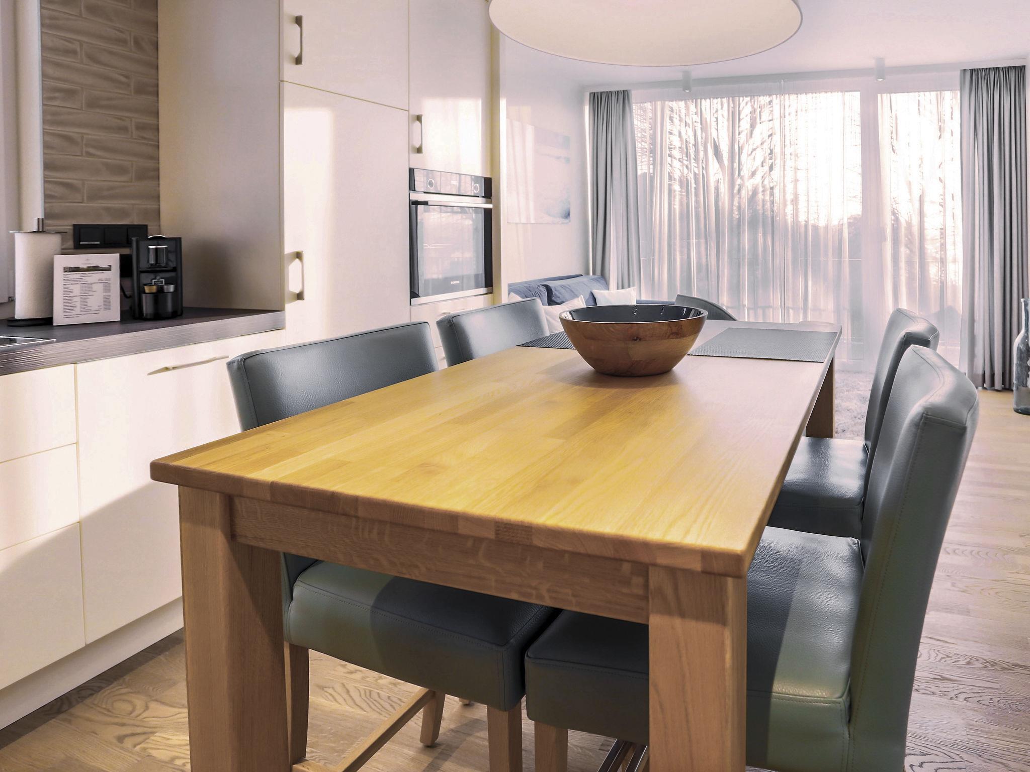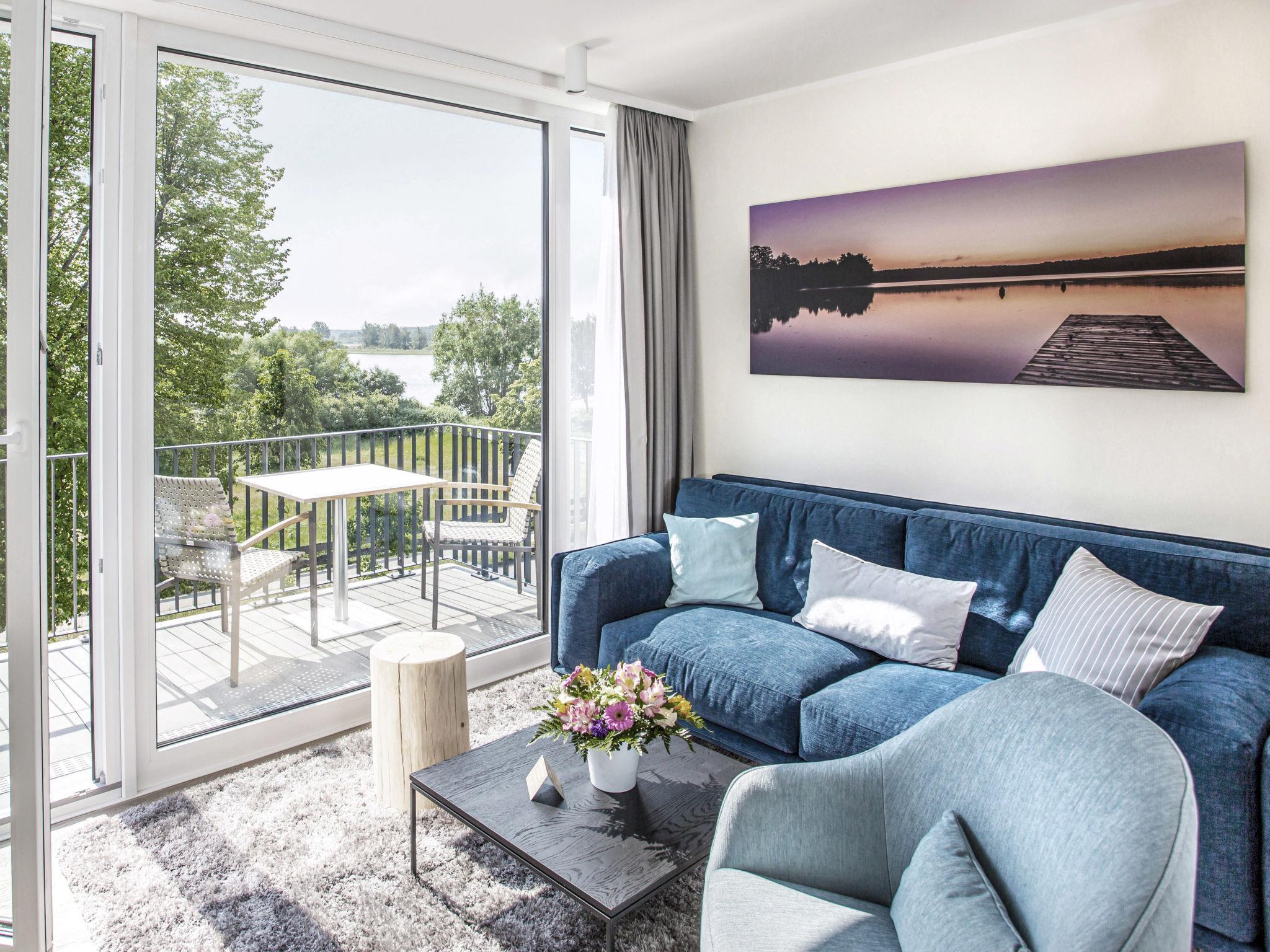 "Maremüritz-Aurora Müritzblick", 2-room apartment 51 to 62 m2. Comfortable and tasteful furnishings: living/dining room with cable TV (flat screen). Exit to the balcony. 1 double bedroom. Kitchenette (oven, dishwasher, 4 ceramic glass hob hotplates, toaster, kettle, electric coffee machine). Shower/WC. Gas heating. Balcony. Balcony furniture. View of the lake. Facilities: children's high chair, baby cot (extra). Internet (WiFi, free). Garage (extra) (1 car). Please note: non-smokers only. Maximum 1 pet/ dog allowed. Smoke alarm, fire extinguisher.