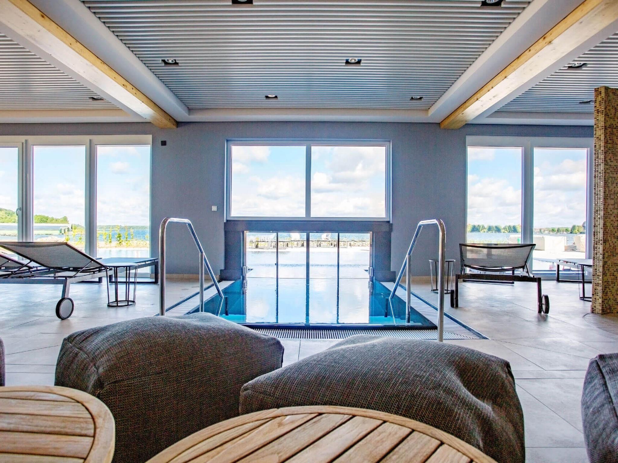 Modern resort "Maremüritz Yachthafen Resort", built in 2019. 184 apartments in the residence. 2 km from the centre of Waren, on the outskirts, 97 km from the centre of Schwerin, 100 km from the centre of Rostock, 80 m from the lake, direct access to the beach. For shared use: property with lawn, swimming pool heated (15 x 6 m, seasonal availability: 01.Jan. - 31.Dec., extra). Private beach, children's playground. In the complex: reception, restaurant, sauna (extra). Spa area for shared use (extra), lift, washing machine (for shared use, extra). Breakfast possible (extra). Storeroom available. Stepped path to the house. Communal covered parking (extra). Shop 2 km, supermarket 2.5 km, bus stop "Waren (Müritz) Jugendherberge" 150 m, grass beach 80 m. Marina 2 km, golf course (18 hole) 22 km. The swimming pool is a heated outdoor pool. Use of the spa area is included! One bathrobe rental is included per adult per stay.
