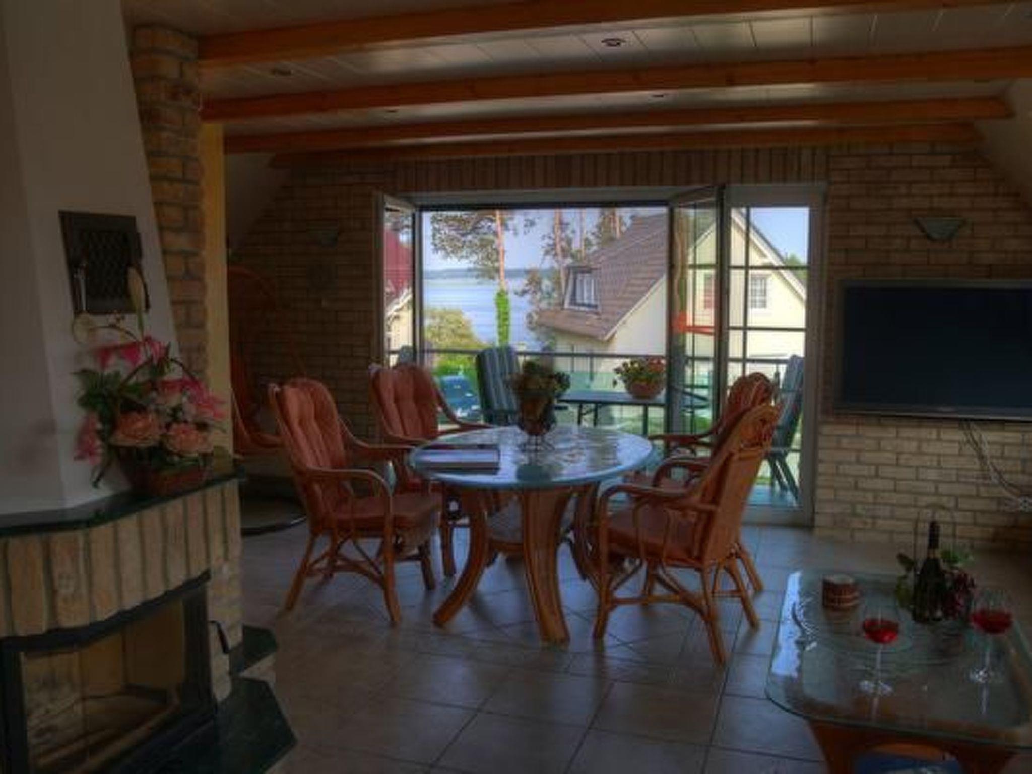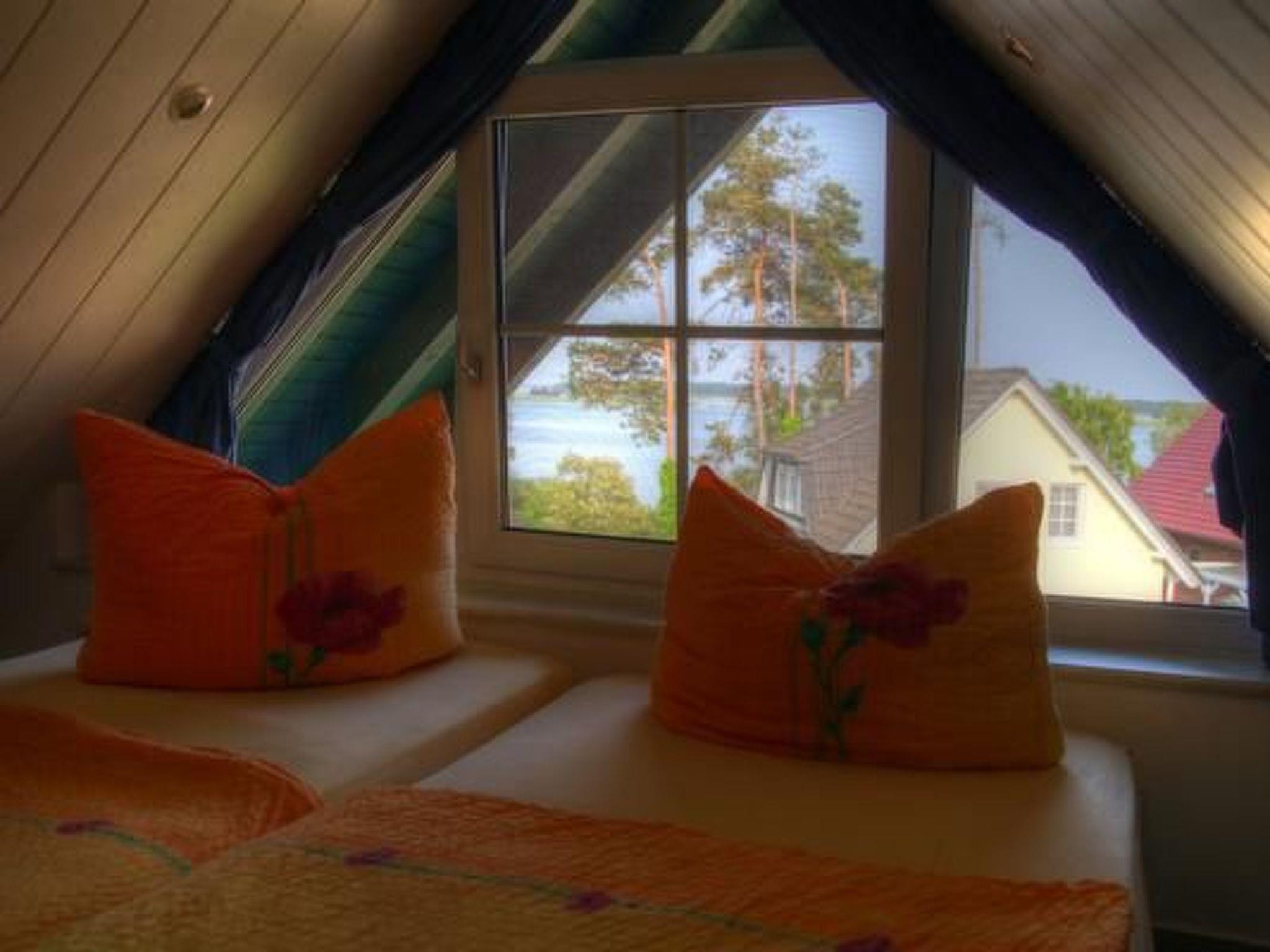 Your holiday accommodation stands on a 400 m² plot and is only 200 m away from a sunbathing lawn with beach. Of course, there is also a fishing jetty 150 m from the holiday home for anglers. From the spacious terrace you can enjoy the marvellous lake view of the Müritz and watch the sailors, boaters and surfers.Upper floor apartmentLiving/dining room with seating and couch, satellite TV, HiFi mini system, comfortable kitchen, dishwasher, fridge/freezer, oven with 4 ceramic hobs etc., Bedroom with double bed, shower/bathtub/WC, fireplace, balcony with seating and lake view, car parking space directly at the house, separate entrance to the flat.