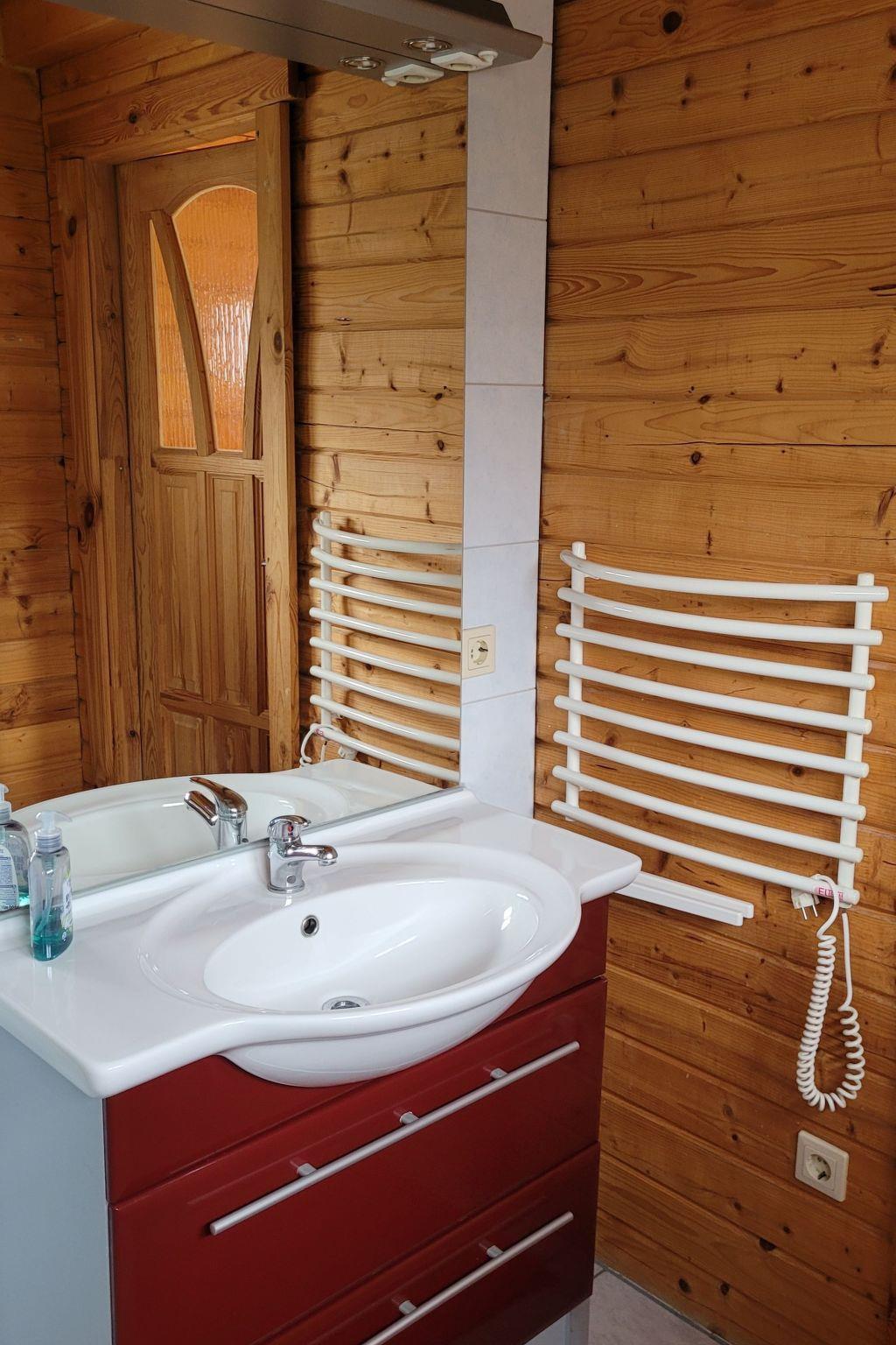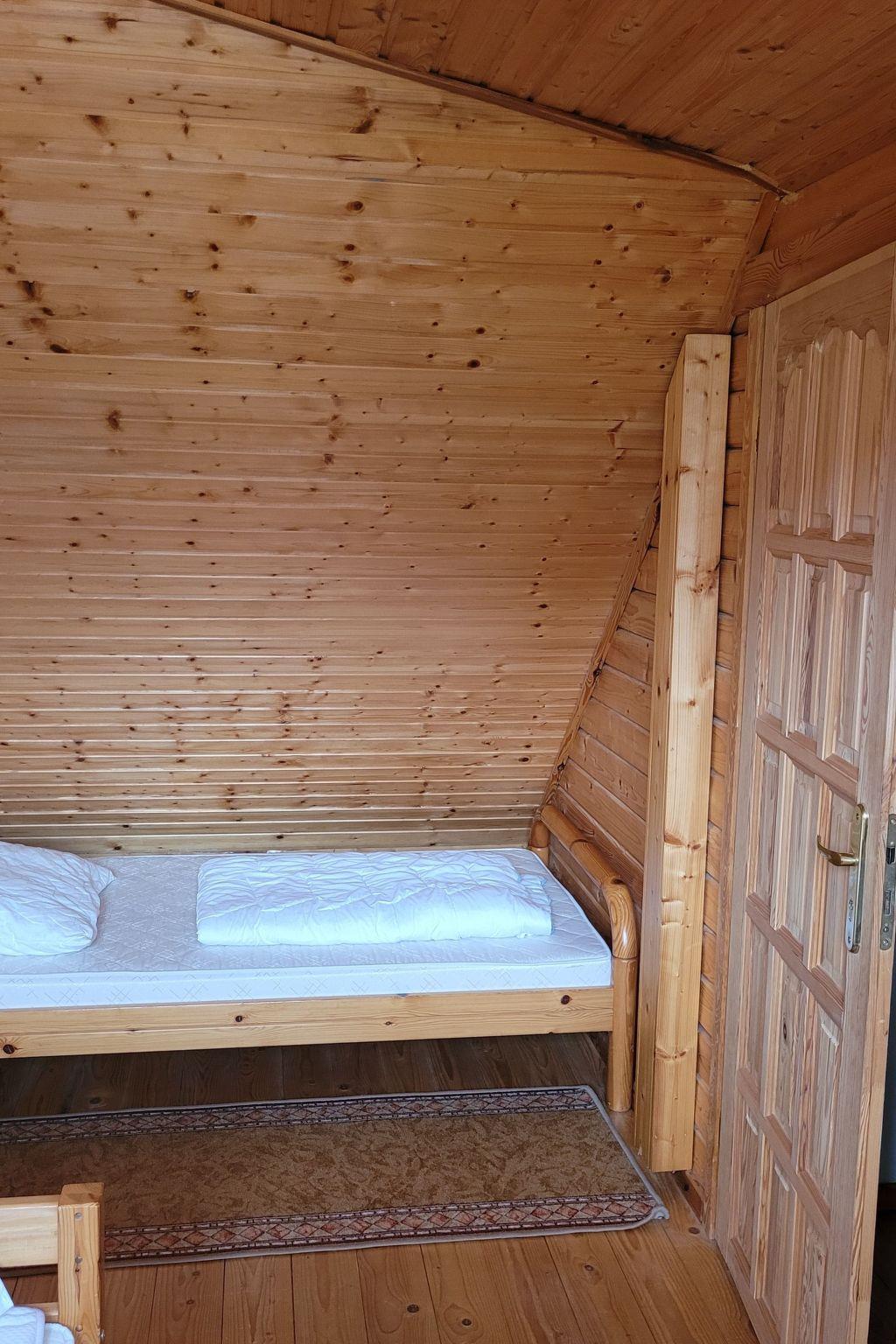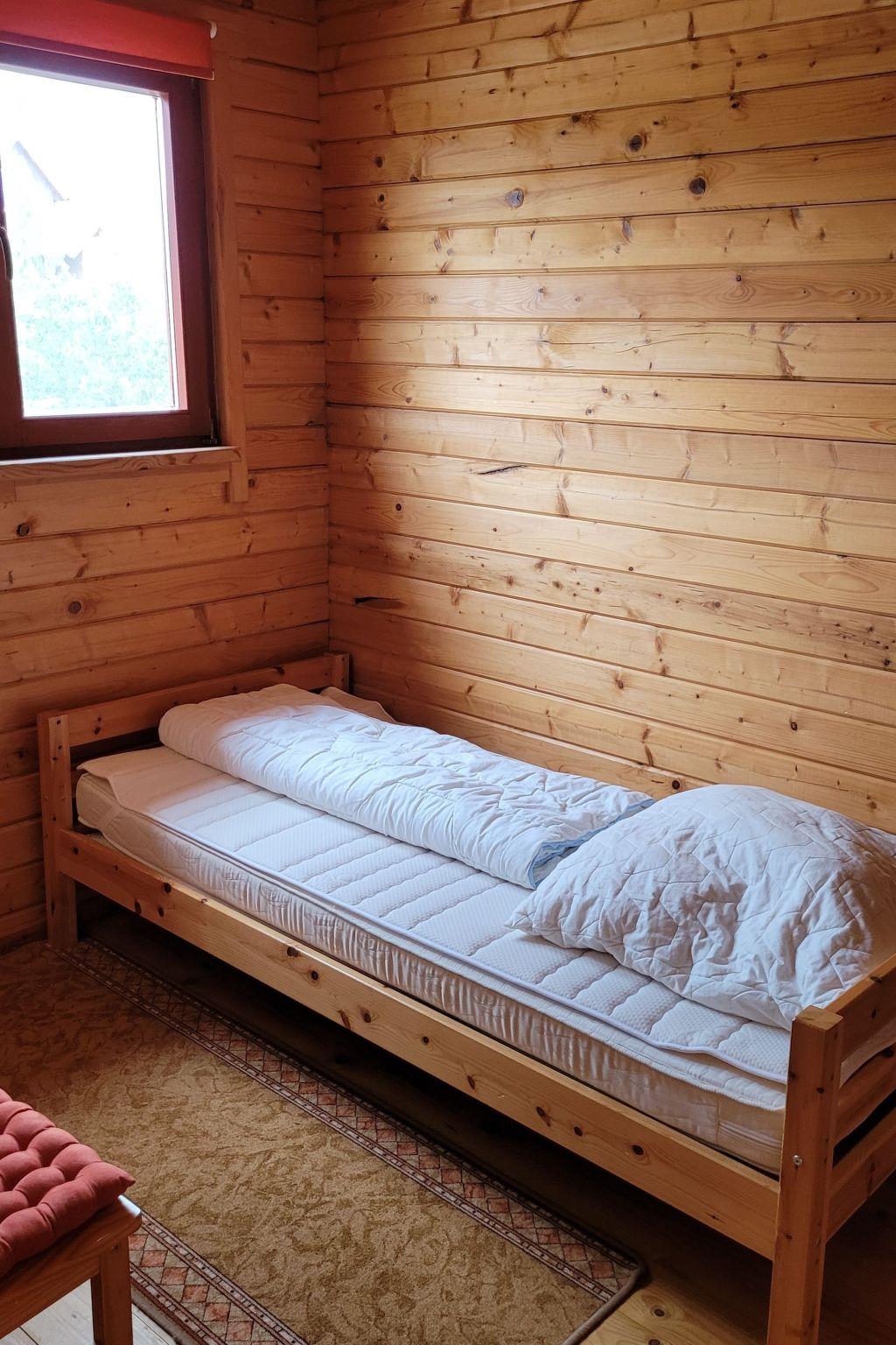 The holiday flat no. 4 is located together with another holiday flat (no. 3) in a wooden house at the beginning of the village. The flat extends over 2 floors. On the ground floor is the living room, the kitchen with dining area and the bathroom with shower/WC and washbasin. A balcony door leads to the outside terrace. The living room, kitchen and dining area are connected as open-plan areas. The living area is equipped with a satellite TV, CD player, radio and a cosy couch. The two bedrooms are located on the upper floor. The first bedroom has a double bed 140 cm wide, the second has two single beds, each 90 cm wide. The terrace is equipped with a parasol and various items of garden furniture. In front of the holiday homes is a 2400 square metre lawn with an uninterrupted view of the surrounding countryside and a 250 square metre fish pond. The village's own bathing area is only a few hundred metres away. The most beautiful beach on the Müritz, with marvellous sand, beach chairs and corresponding facilities, can be reached by bike in 10 minutes. There you can also set sail with the White Fleet or hire a boat yourself. In the neighbouring town of Klink (2 km) there is an indoor tennis court with adjoining bowling alley, as well as a sports field. You can hire bicycles just 200 metres from the holiday flat. A bus stop, from which you can travel to Waren, is only 150 metres away. In Röbel (18 km) you can visit the local thermal baths in the cooler months of the year.