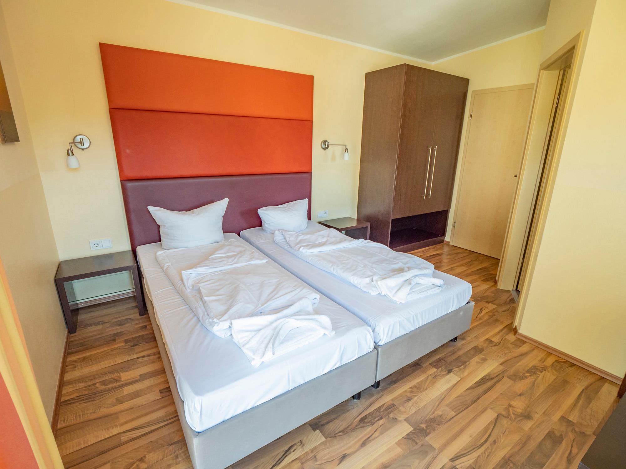 Die Wohnungen Müritz verfügen über zwei Doppelschlafzimmer mit jeweils eigenem Duschbad. Das Sofa im Wohnbereich lässt sich zu einem Doppelbett für zwei weitere Personen umbauen.