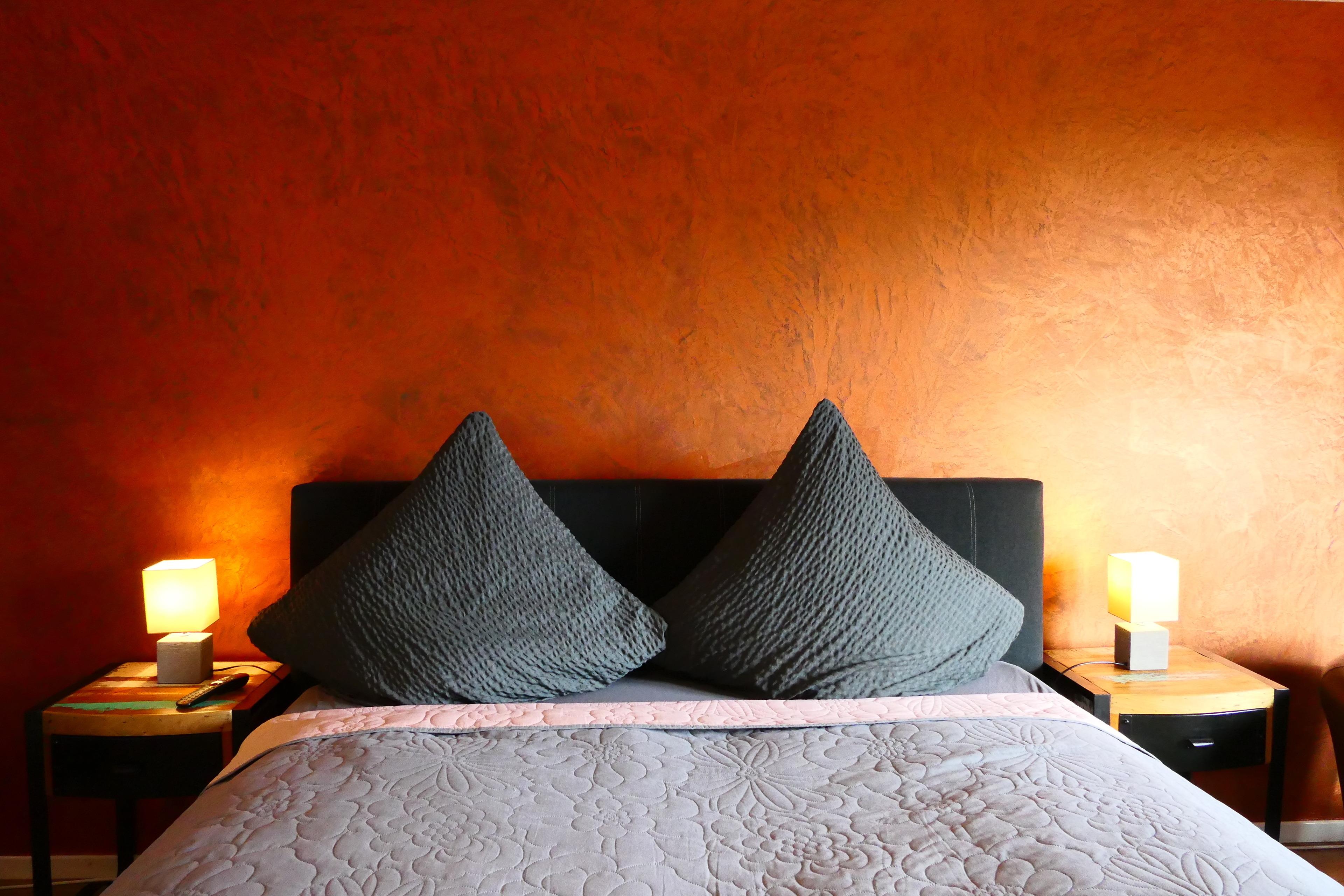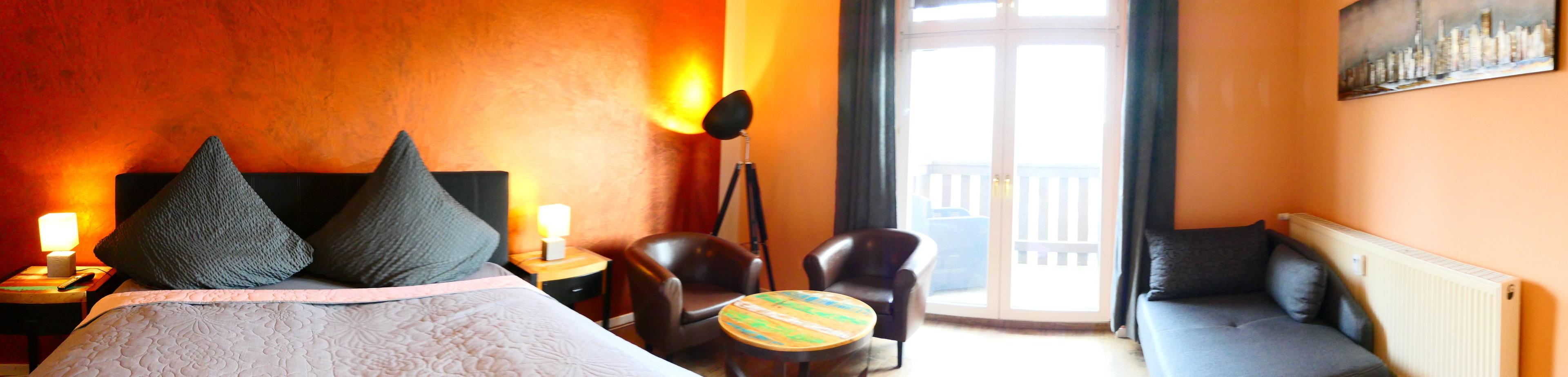 Von hier kann man rechts ins 1. Schlafzimmer sehen und auch den Blick ins 2. Schlafzimmer schweifen lassen. Beide Schlafzimmer haben ein großes 5* Boxspringbett für einen königlichen Schlaf. Vom zweiten Schlafzimmer gelangt man dann direkt auf den Balkon mit einer Sitzecke.