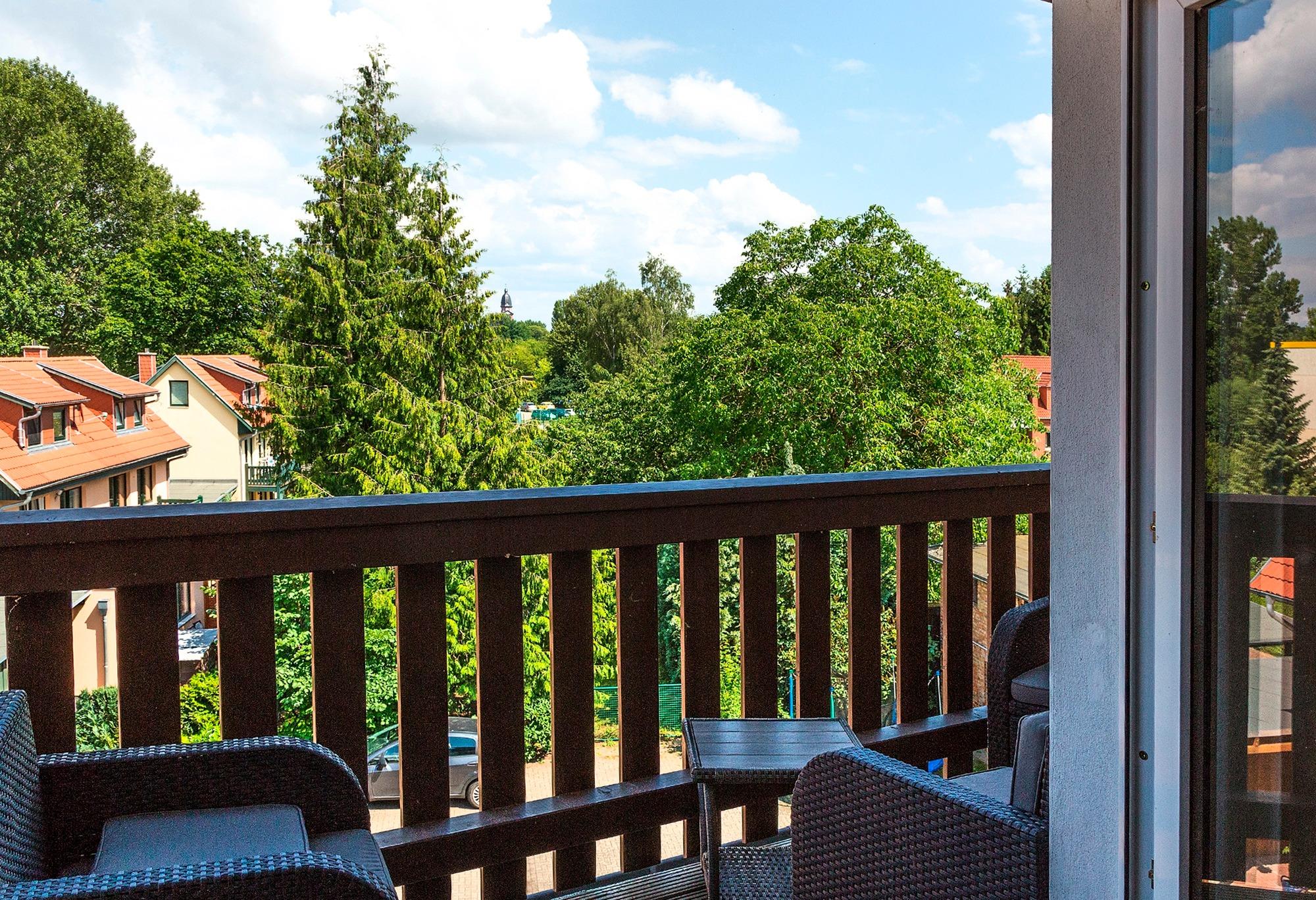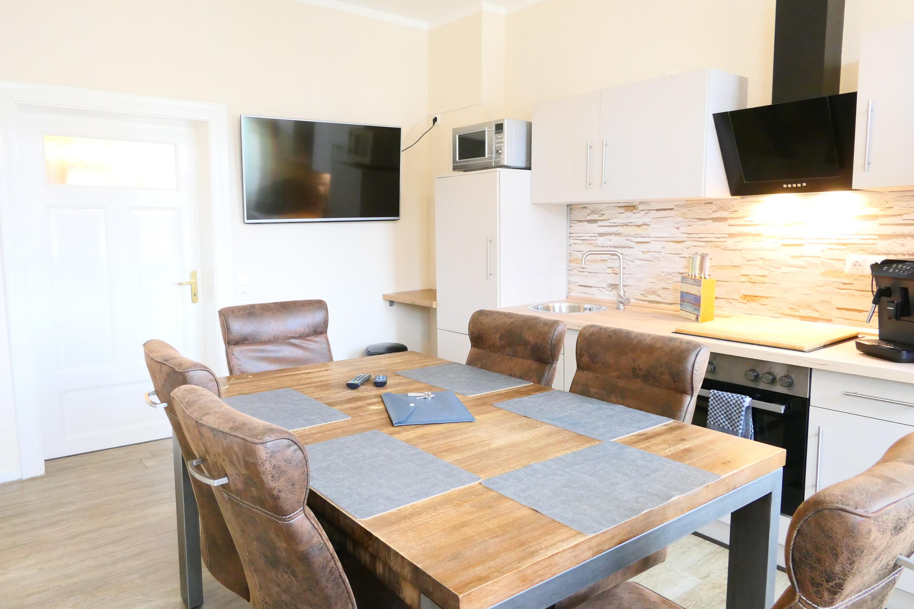 Die Ferienwohnung besticht mit seinen zwei Schlafzimmern und der schönen Wohnküche mit riesigen 48 Zoll Fernsehgerät. Der Balkon lädt gerade an einem schönen Sommerabend zu einem Glas Wein und Blick in die Natur.