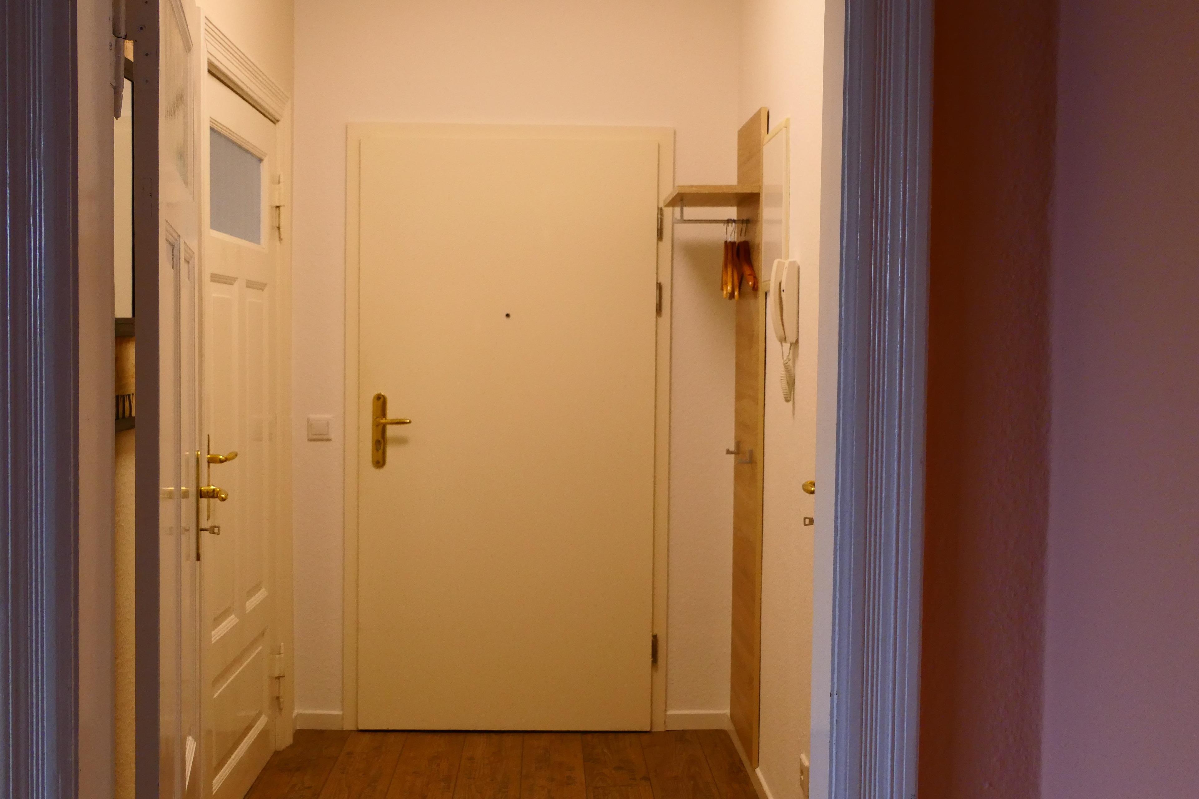 Schon beim Eintritt in den Flur ist zu erkennen, mit welch einer Sorgfalt und Geschick hier eingerichtet wurde. Der Boden ist im industriellen Loftdesign gestaltet. Links der Blick in die Küche gibt eine angenehme Atmosphäre frei und strahlt Wohlbehagen aus.