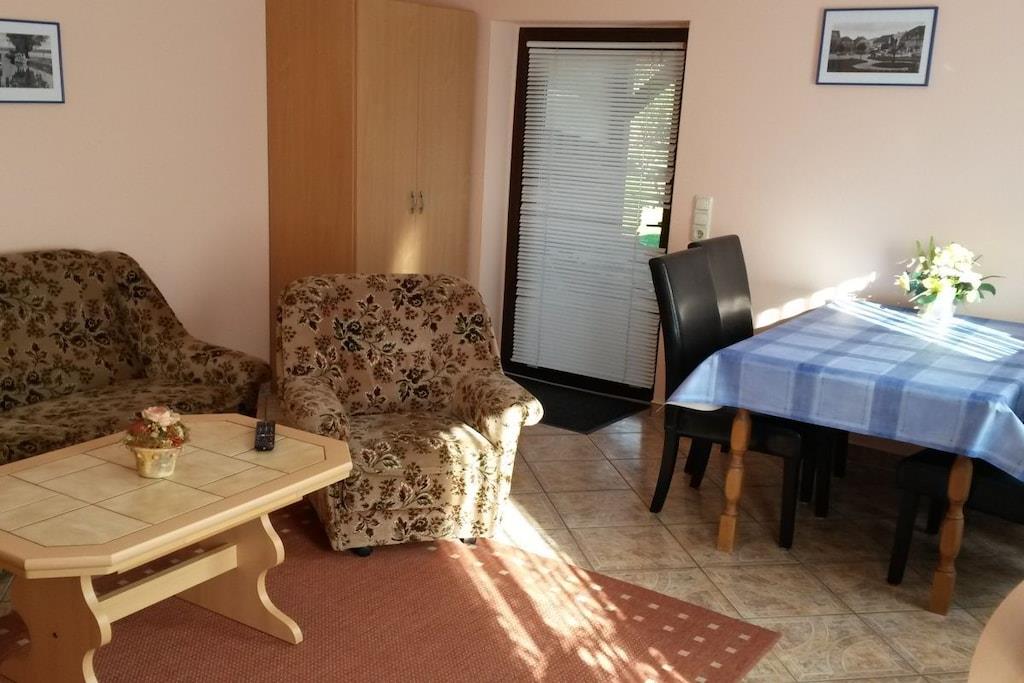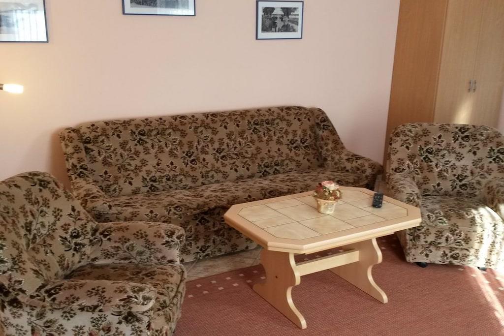 Stueetage: (Køkken(, tekøkken, kakkelovn, elkedel, brødrister, komfur, kaffemaskine, ovn, mikrobølgeovn, opvaskemaskine , køleskab, fryser, varme), stue / spisestue(enkeltsovesofa, Fjernsyn, spisebord, radio, CD-afspiller, stereoanlæg, varme)) På 1. etage: (soveværelse(, , enkeltseng, dobbeltseng, radio), badeværelse(, , toilet, badekar, bruser, håndvask, vaskemaskine, føntørrer)) , , , Internetadgang, Førstehjælp, vaskemaskine, varme, terrasse(Grill center, Bordtennis, grill, havemøbler, solstole), have(Grill center, Græsplæne, havemøbler, solstole), parkering, strygebræt, strygejern, tørreskab