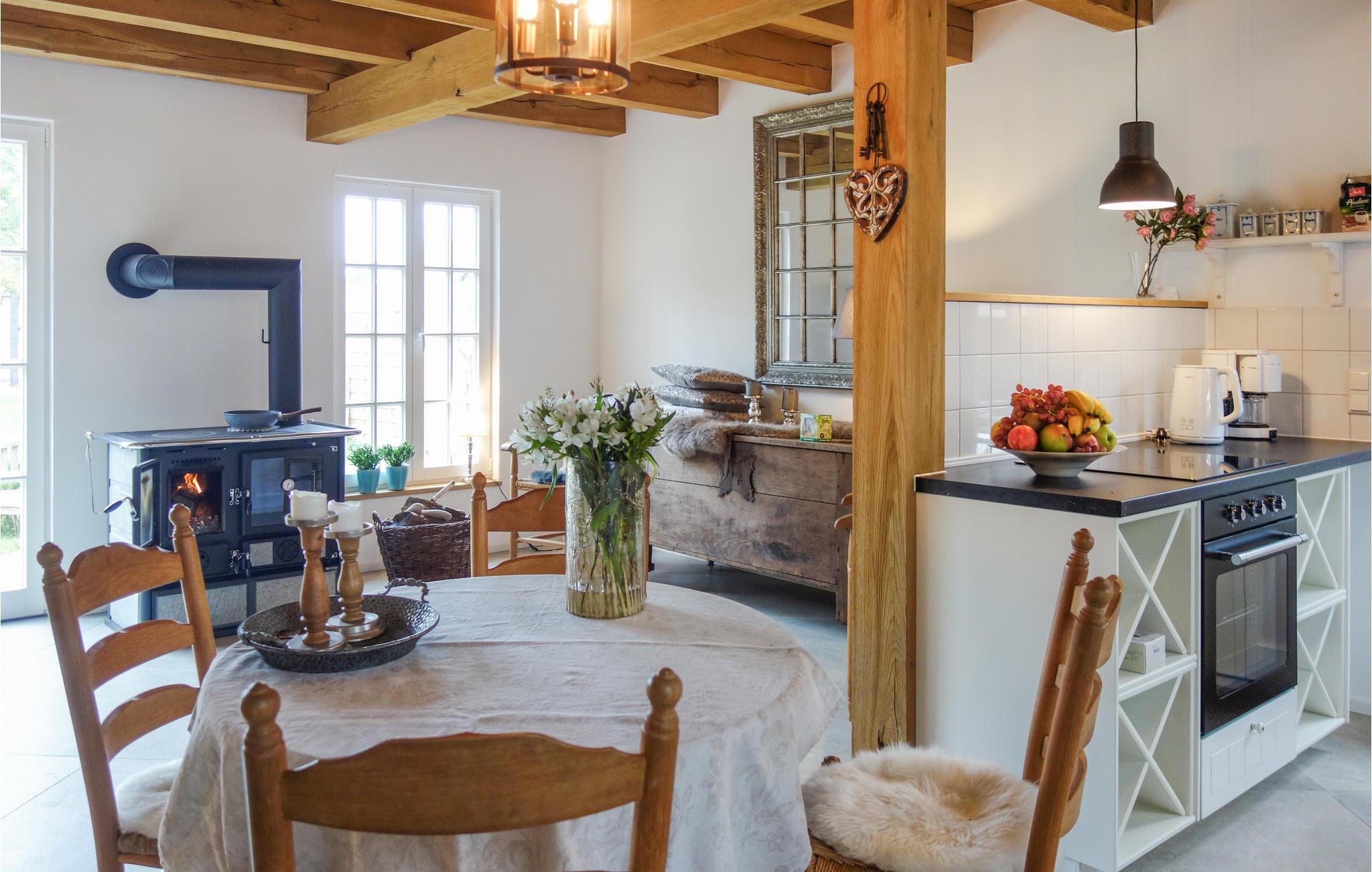 Forkæl jer selv med en pause fra hverdagen og tilbring feriedagene i dette fine, stilfulde hus. Det synlige bindingsværk, den autentiske brændeovn og den velvalgte indretning og udsmykning skaber en atmosfære, der er uden sidestykke. Nyd dagens små pauser på de to etager, sæt jer med en kop kaffe eller grill på den overdækkede terrasse. Haven omkranser det charmerende hus og har god plads til at løbe og lege.