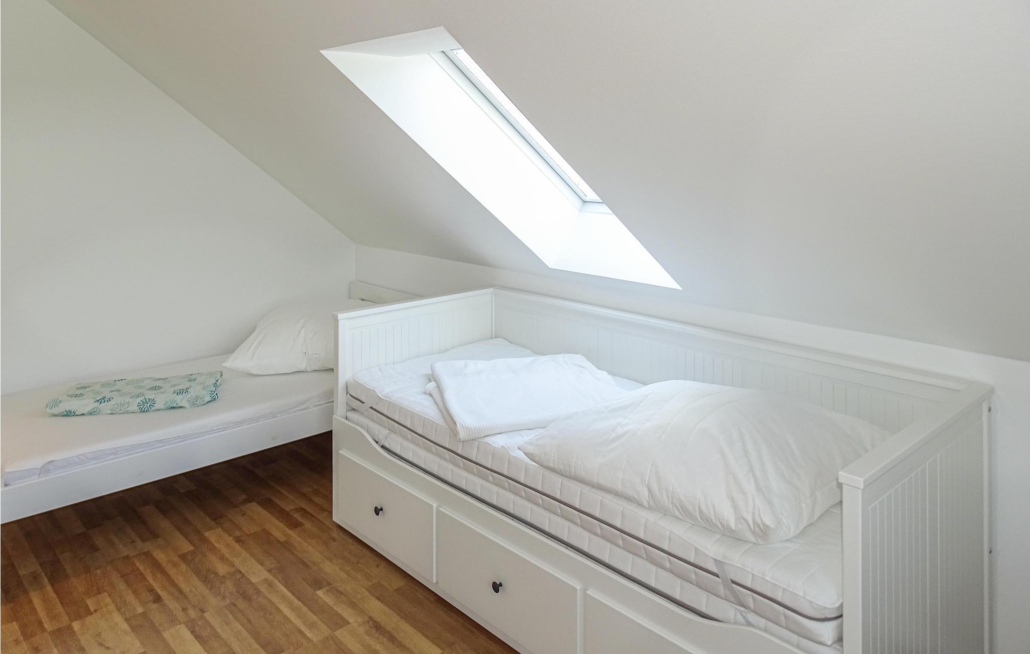 Det første soveværelse er indrettet med en dobbeltseng, mens det andet soveværelse har to enkeltsenge og en udtræksdagsseng.