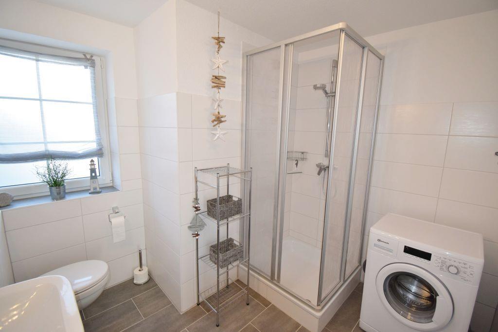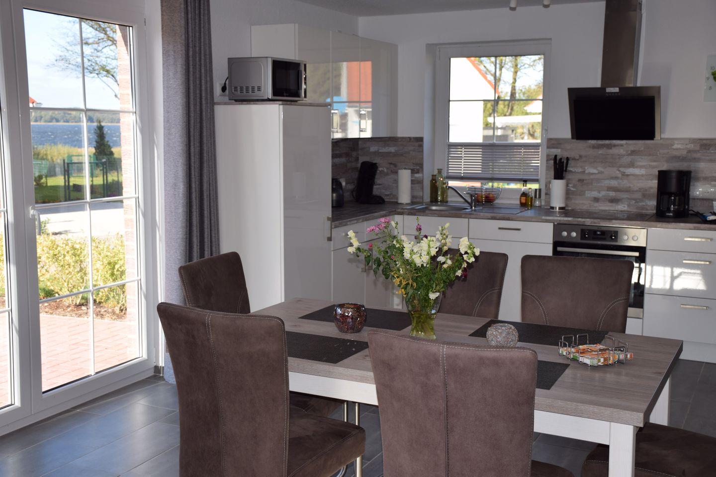 Der großzügige Wohn-Essbereich mit Seeblick lässt keine Wünsche offen. Ein gemütliches Sofa, ein großer SAT-Fernseher (40 Zoll) mit DVD/CD/USB, eine Playstation mit Spielen und eine Bücher- und Spielesammlung sorgen für Entspannung und Unterhaltung. Das Schlafzimmer im Erdgeschoss ist mit einem Doppelbett (1,80 x 2 m) ausgestattet. Im Erdgeschoss befindet sich ebenfalls ein schönes Duschbad (Dusche mit flachem Einstieg) mit Handtuchheizkörper und Fön. Eine Waschmaschine, Wäscheständer, Bügeleisen- und -brett sind ebenfalls vorhanden. Die moderne Küche bietet eine reichhaltige Ausstattung, z.B. Backofen, Mikrowelle, Kühlschrank mit Gefrierfach, Geschirrspülmaschine, Kaffeemaschine, Senseo, Toaster, Wasserkocher, Eierkocher, hochwertige Töpfe, Tischgrill, Sandwichtoaster, Waffeleisen und weiteres vielfältiges Koch-und Backgeschirr.
