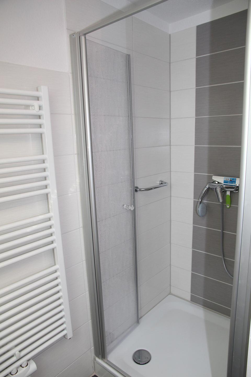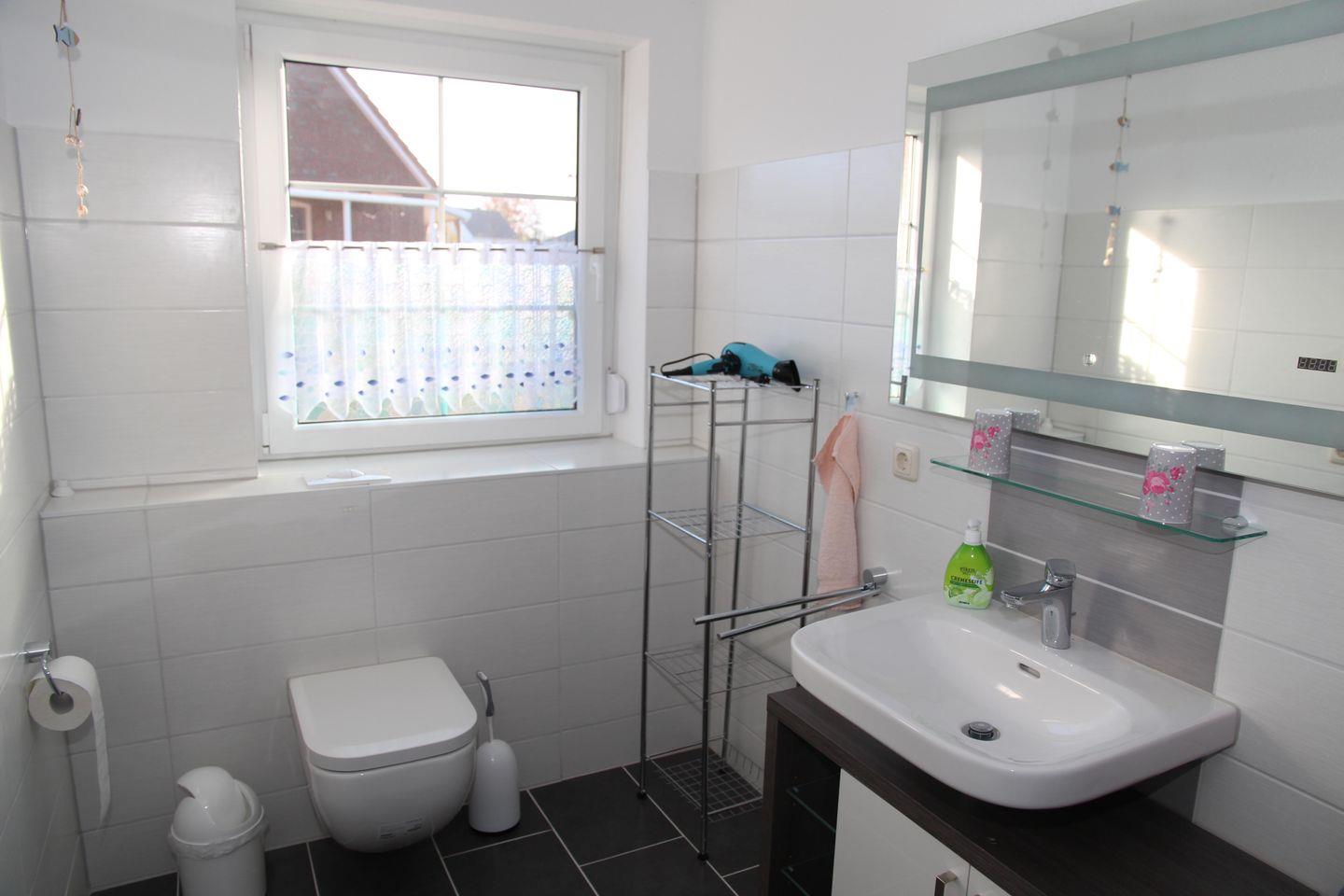 Beide Badezimmer sind mit Dusche mit niedrigem Einstieg, WC, Waschbecken, LED-Spiegel, Fön und Frisierstab ausgestattet.