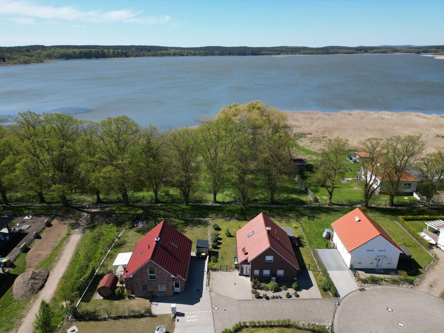 Das Ferienhaus befindet sich in 1. Seelage mit Blick auf den Großen Wariner See. Der bewachte Badestrand ist. ca. 100m vom Haus entfernt, zu erreichen nach einem Spaziergang durch die unter Naturschutz stehende, schmalste Lindenallee Mecklenburgs, die direkt am Grundstück vorbeiführt und direkten Zugang vom Garten hat.