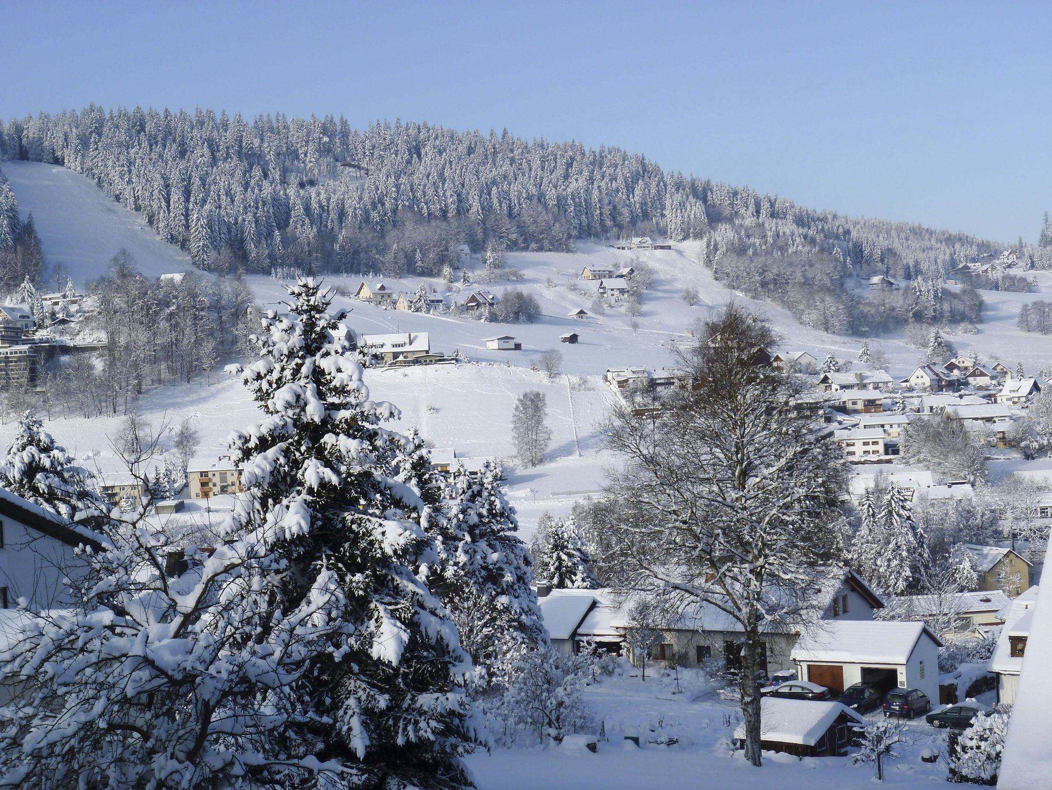 Von Balkon und Wohnzimmer haben Sie einen Panoramablick über Warmensteinach. Komfortable Ausstattung mit Boxspringbett und Spülmaschine. Skikeller im Haus Garten mit Liegewiese