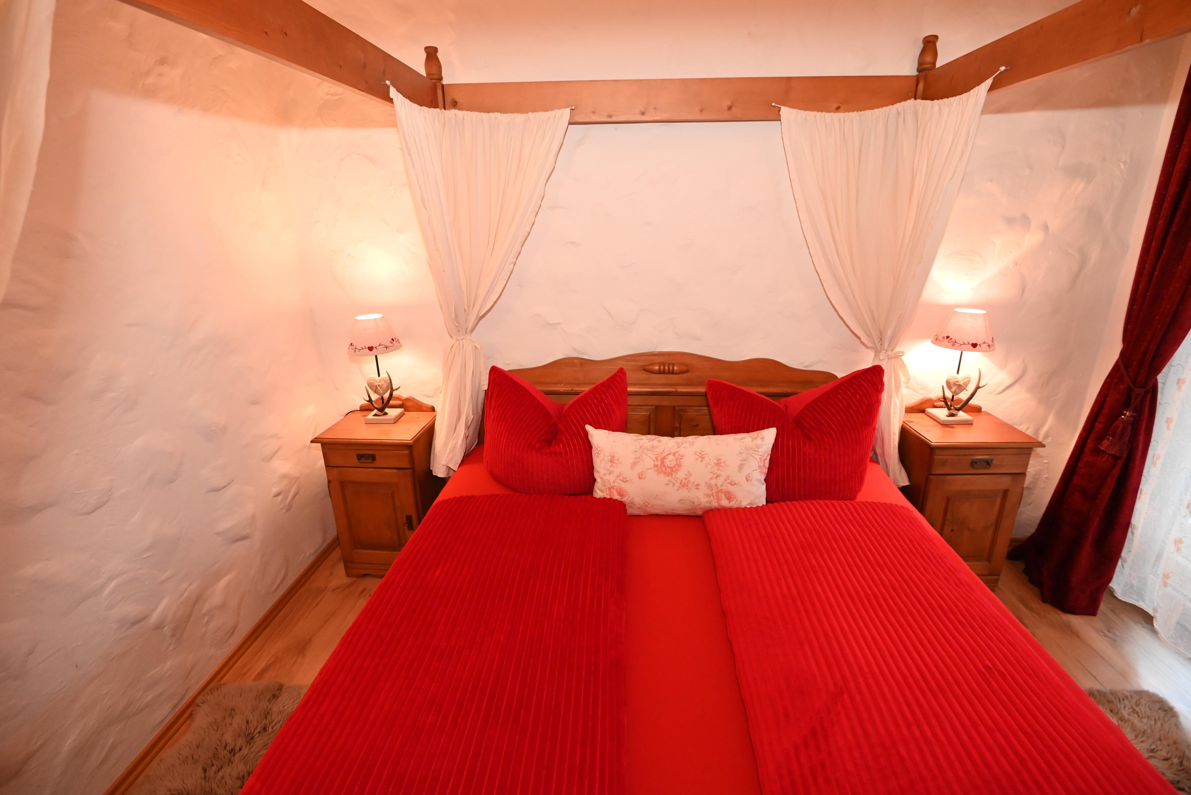 Die Suite beherbergt zwei SCHLAFZIMMER. Das erste Schlafzimmer verfügt über Himmelbett (180x200 cm) und Kleiderschrank. Das zweite Schlafzimmer verfügt über ein französisches Bett (160x200 cm) und einen Kleiderschrank.