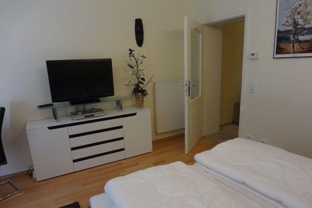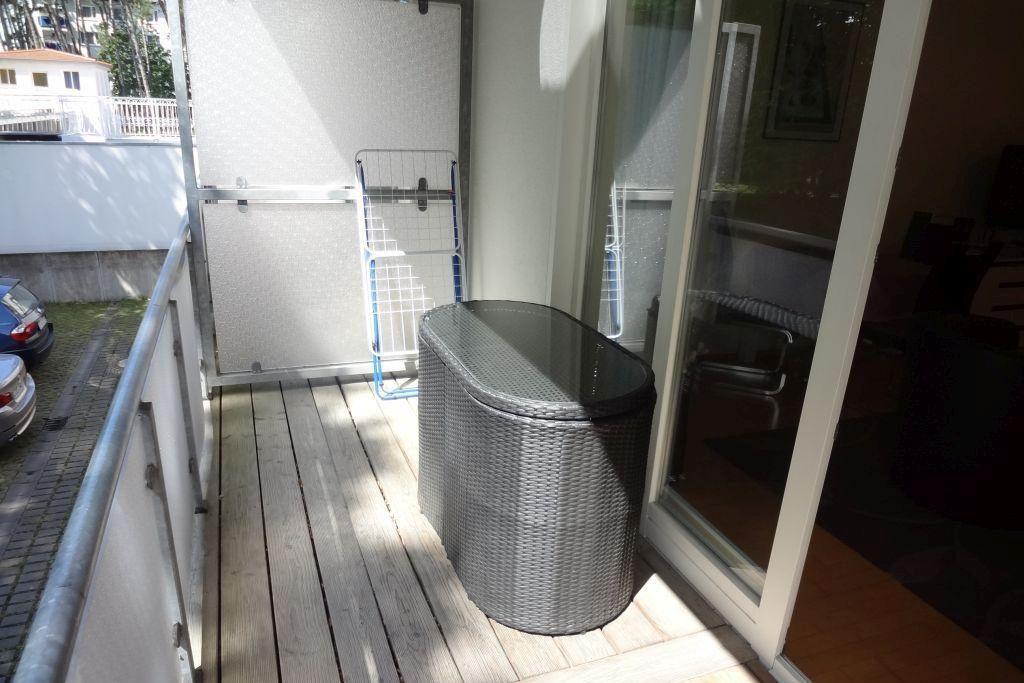 Dieses modern eingerichtete 43qm große 1-Raumapp. mit Balkon zur Südseite ist für max. 3 Personen geeignet. Im Wohnzimmer steht ein Doppelbett, eine Schlafcouch, Flatscreen-TV, DVD-Player, Stereoanlage mit CD sowie ein Eßtisch mit 4 Stühlen zur Verfügung.