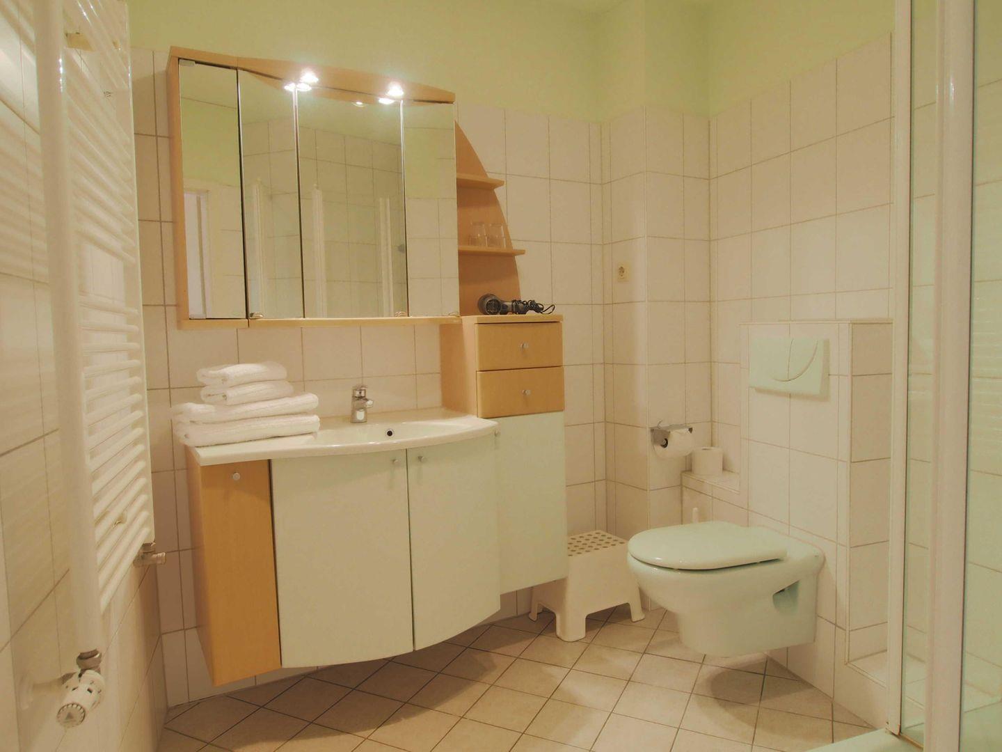 Im Obergeschoss erwartet Sie ein behagliches Schlafzimmer mit Doppelbett und großzügigem Kleiderschrank. Das helle Badezimmer bietet viel Platz und Komfort – ideal, um entspannt in den Tag zu starten.