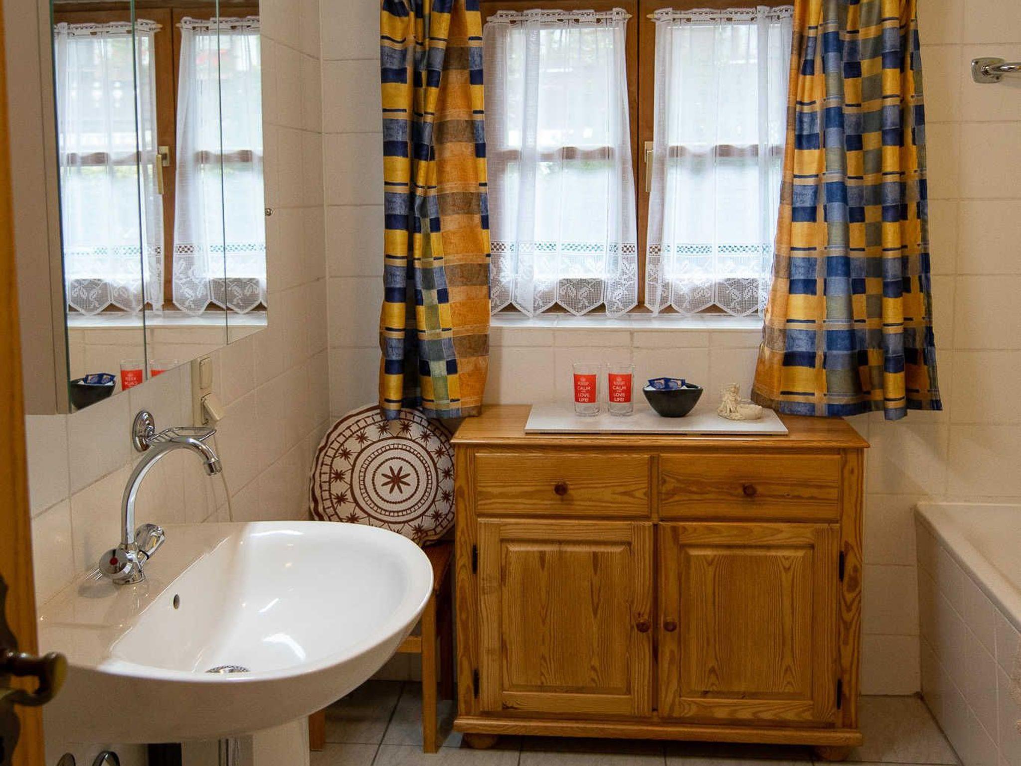 Unser ruhiges Feriendomizil hat eine Wohnküche, Schlafzimmer, Bad mit Wanne und ein