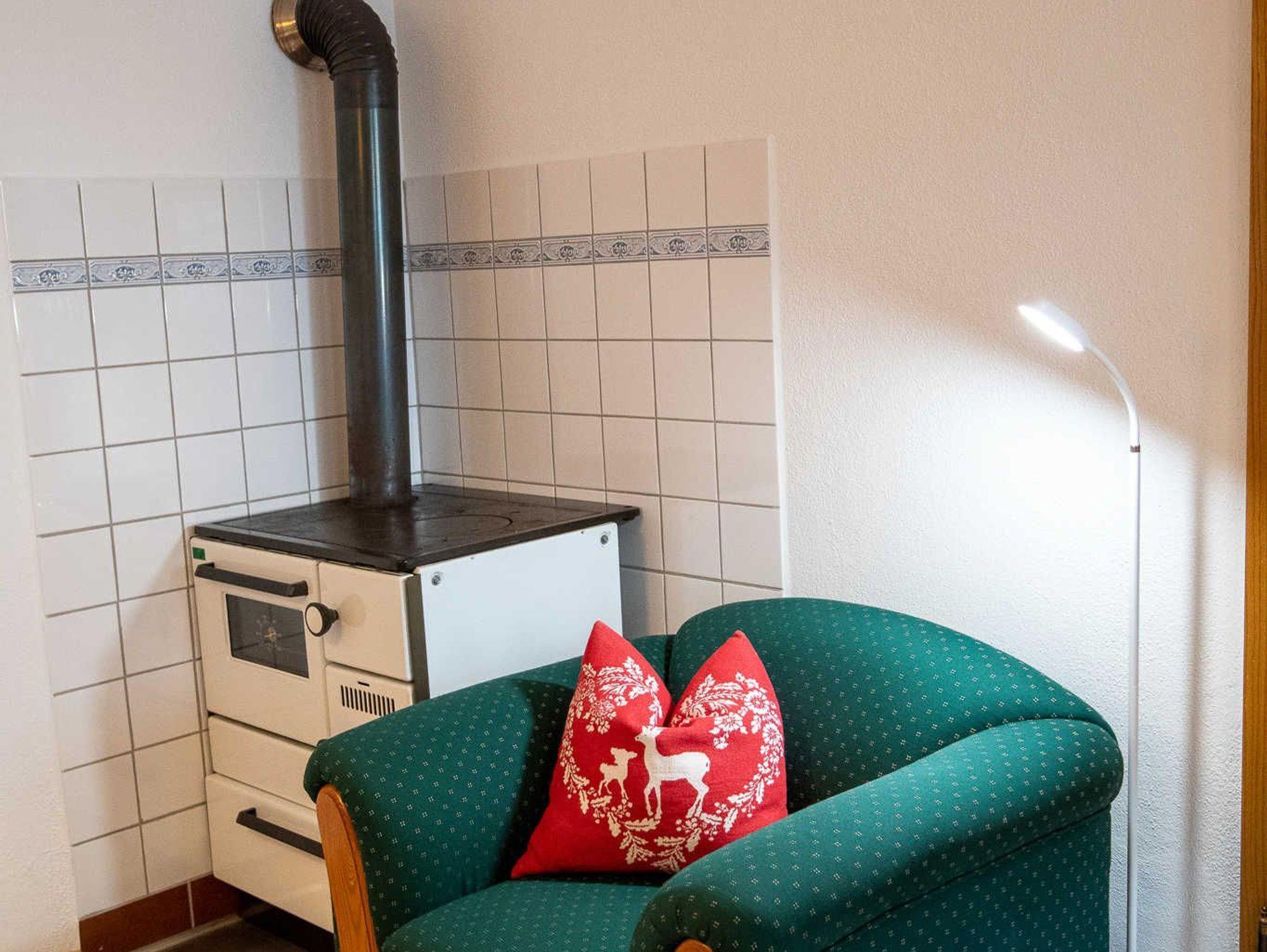 In der Wohnküche kann zusätzlich auch gerne der Holzofen befeuert werden.