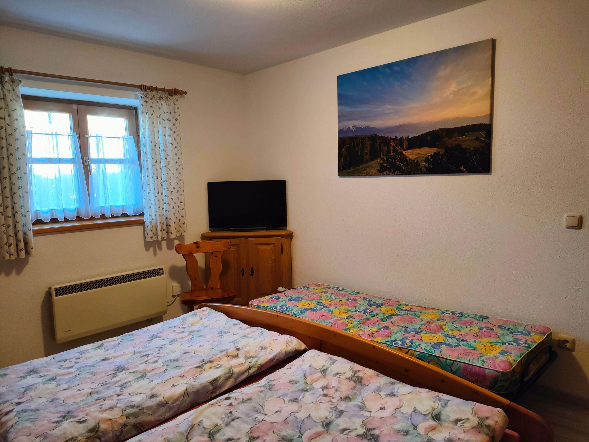 Im Schlafzimmer ist ein Doppelbett 2x2m und ein Fernseher mit SAT - Anschluss.