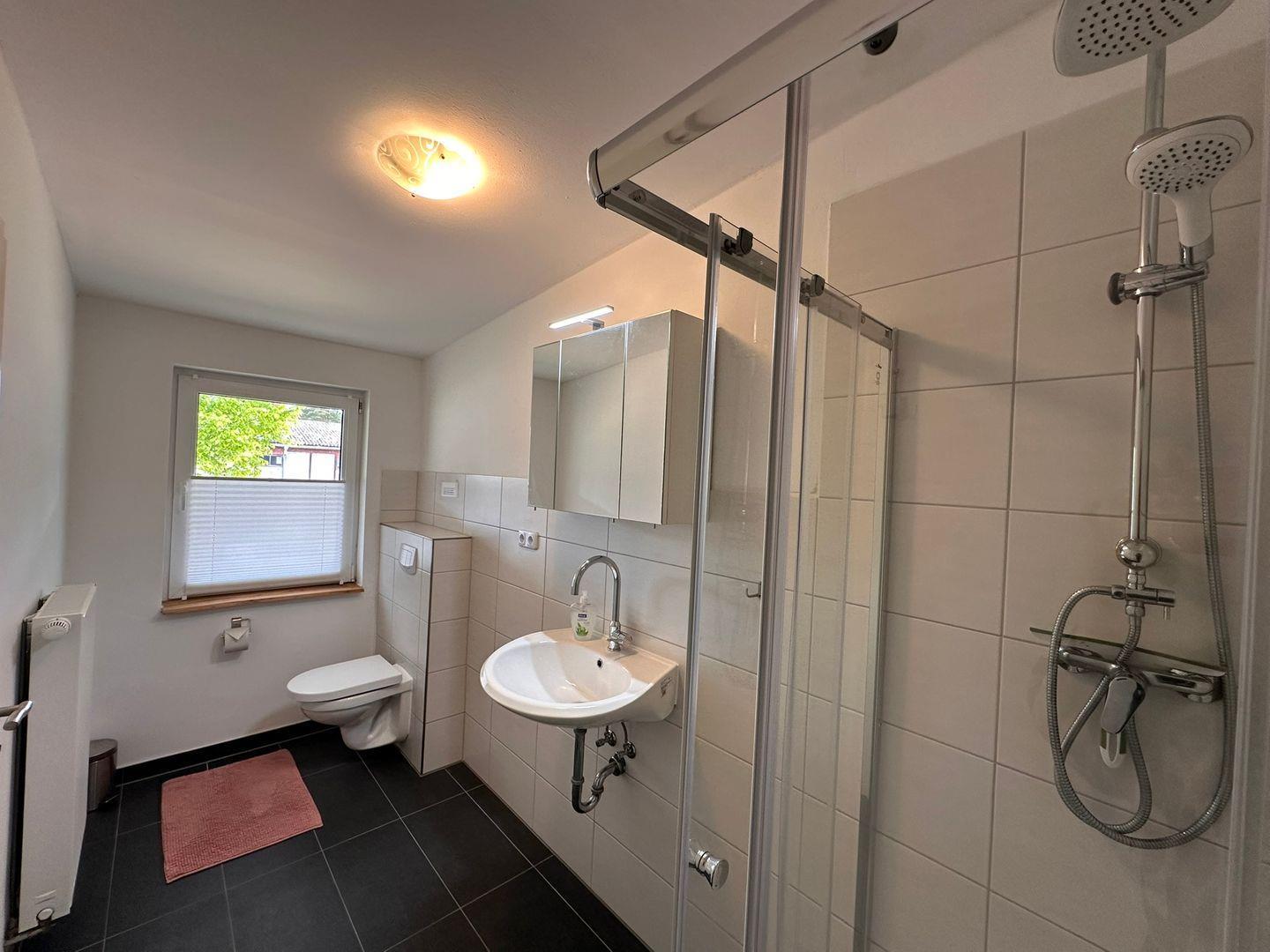 Das Ferienzimmer verfügt über ein modernes Badezimmer, das mit einer Dusche und einer Wanne ausgestattet ist. Hier finden Sie alles, was Sie für Ihre tägliche Hygiene benötigen, inklusive Handtüchern und Badetüchern. Ein Ganzkörperspiegel, ein Waschbecken mit warmem Wasser sowie ein Rauchmelder sorgen zusätzlich für Ihre Sicherheit und den gewünschten Komfort.