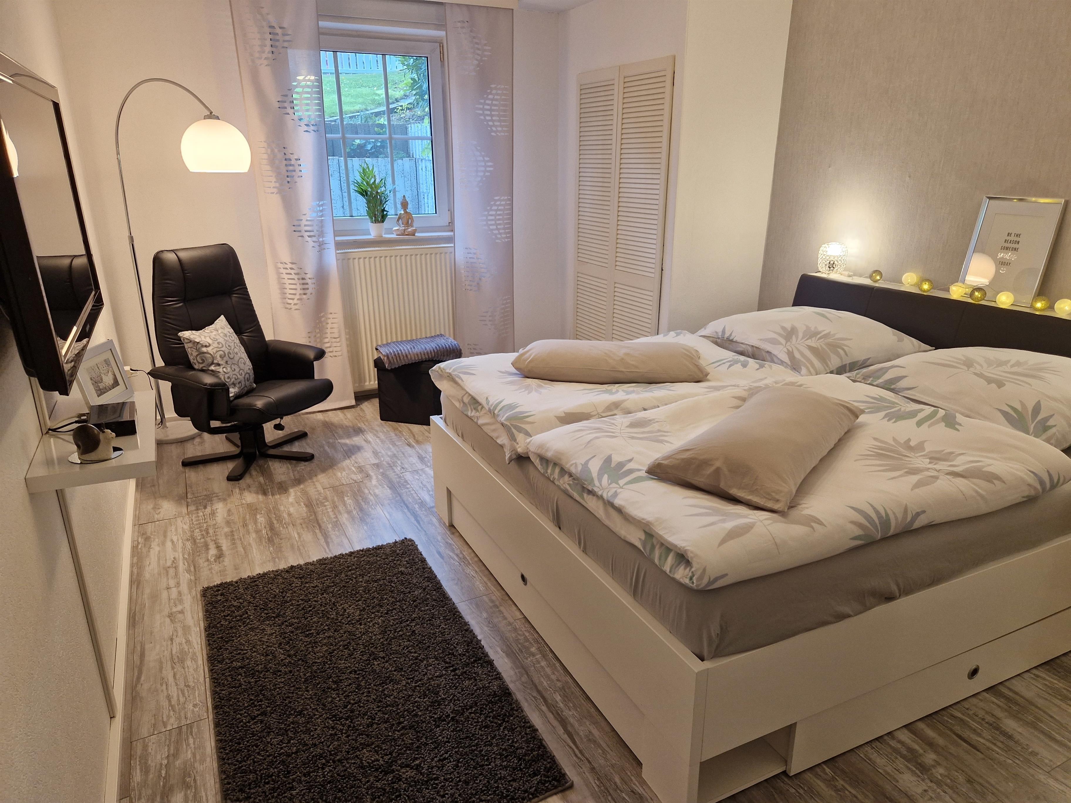 Unser Apartment nahe dem Möhnesee, lädt mit einer gemütlichen Wohnatmosphäre und einer modernen Ausstattung zum Wohlfühlen ein. Es verfügt über einen Wohn- Essbereich mit gemütlicher, ausziehbarer Couchecke, sowie einem Smart TV, WLAN, DVD Player, Bücher und Gesellschaftsspielen. Die Küche ist gut ausgestattet mit Ceranfeld, Backofen, Kühl- Gefrierkombination, Mikrowelle, Toaster, Wasserkocher, Eierkocher, sowie einer Kaffeemaschine. Eine Senseo Kaffeemaschine kann zur Verfügung gestellt werde. Im Schlafzimmer befindet sich ein Doppelbett, 1,80 x 2,00 m, ein Kleiderschrank, sowie ein Flachbild TV.