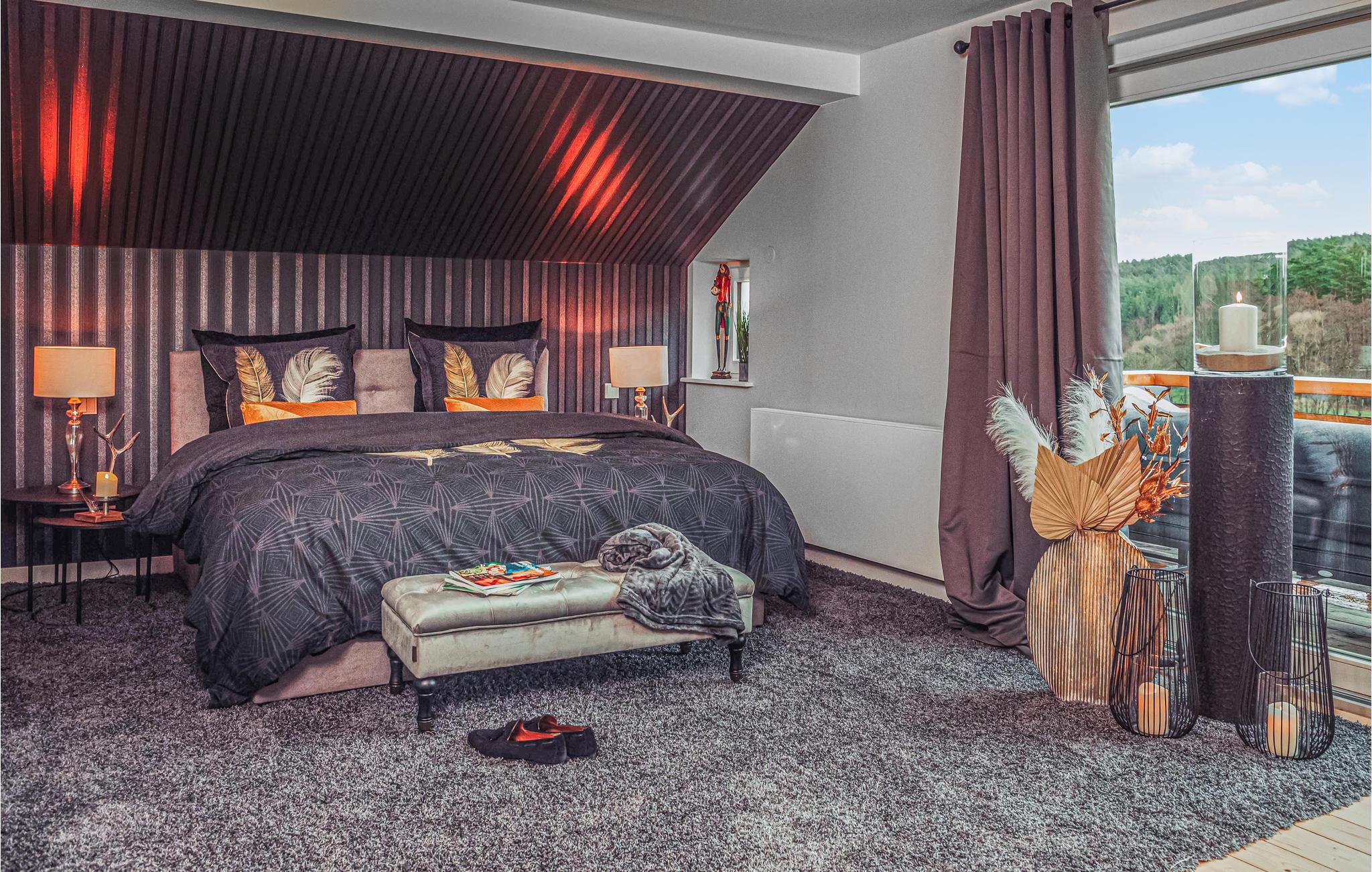Velkommen til dette indbydende hus, der har en behagelig charme og smagfulde indretningsdetaljer. Huset er placeret idyllisk og ugenert i skoven og har en vidunderlig udsigt over landskabet. I kan se frem til hyggelige aftener efter dagens aktiviteter i naturen, slappe af i saunaen eller i stuens hyggelige atmosfære, mens pejsen spreder hyggelig varme.