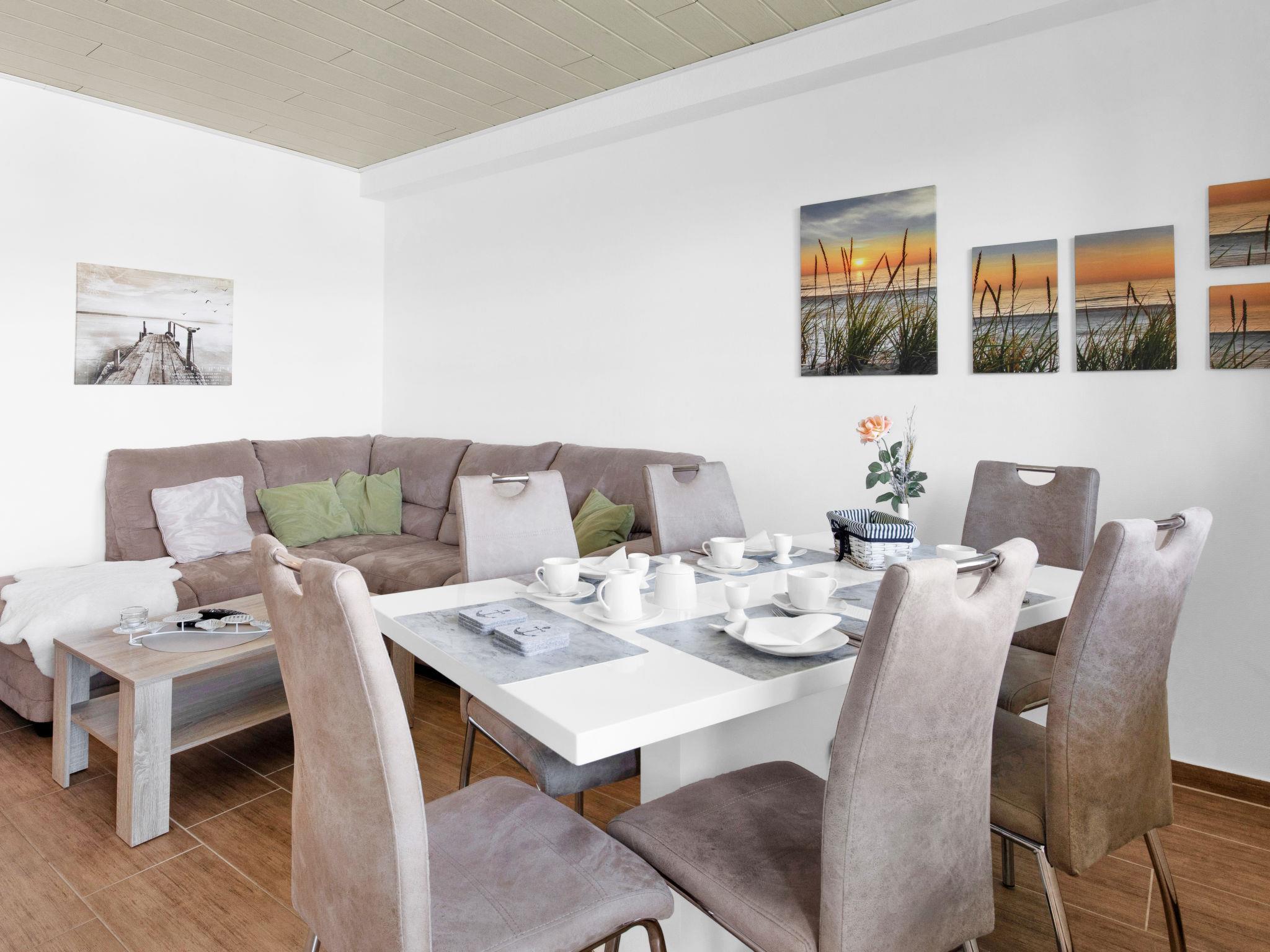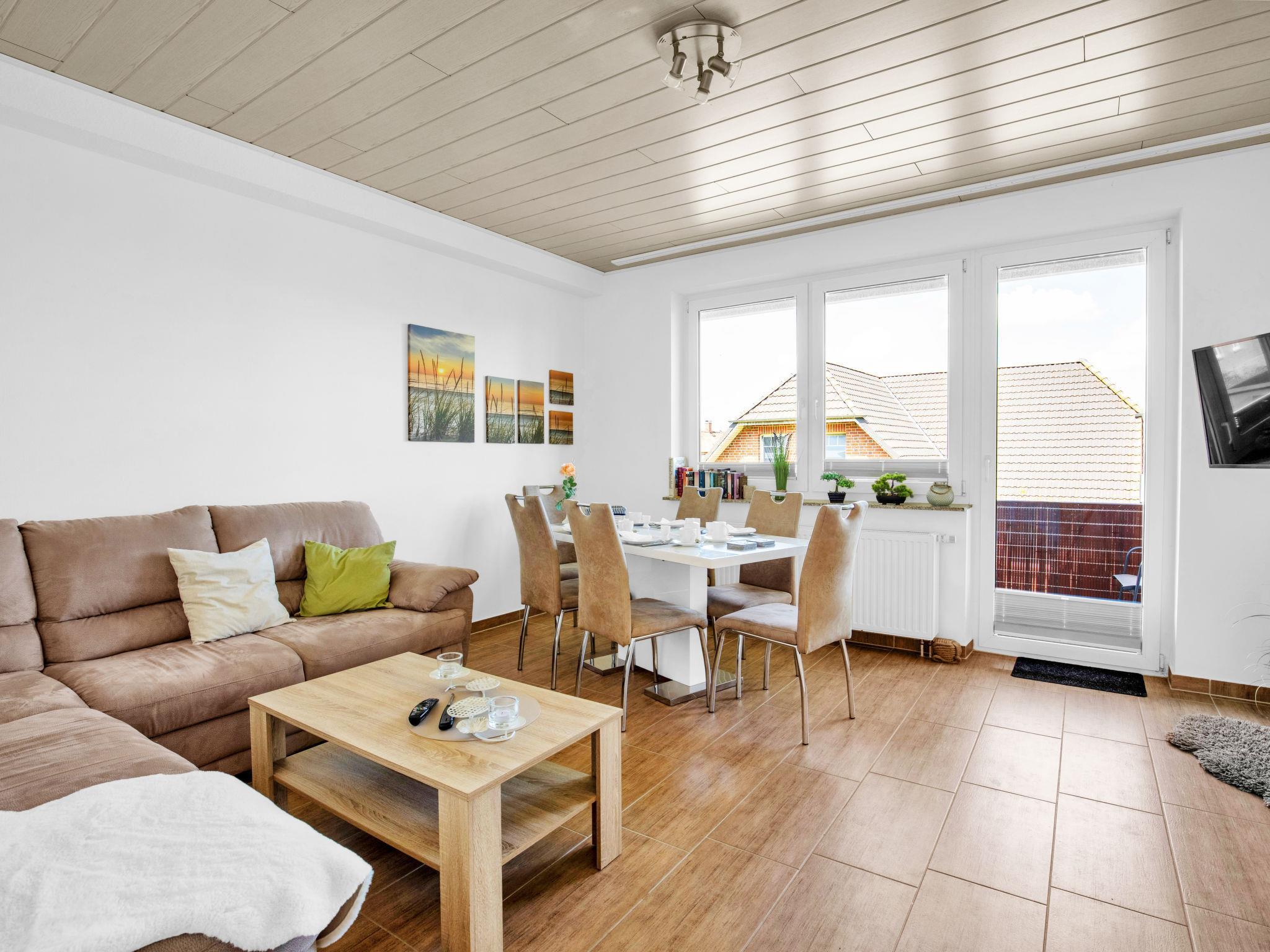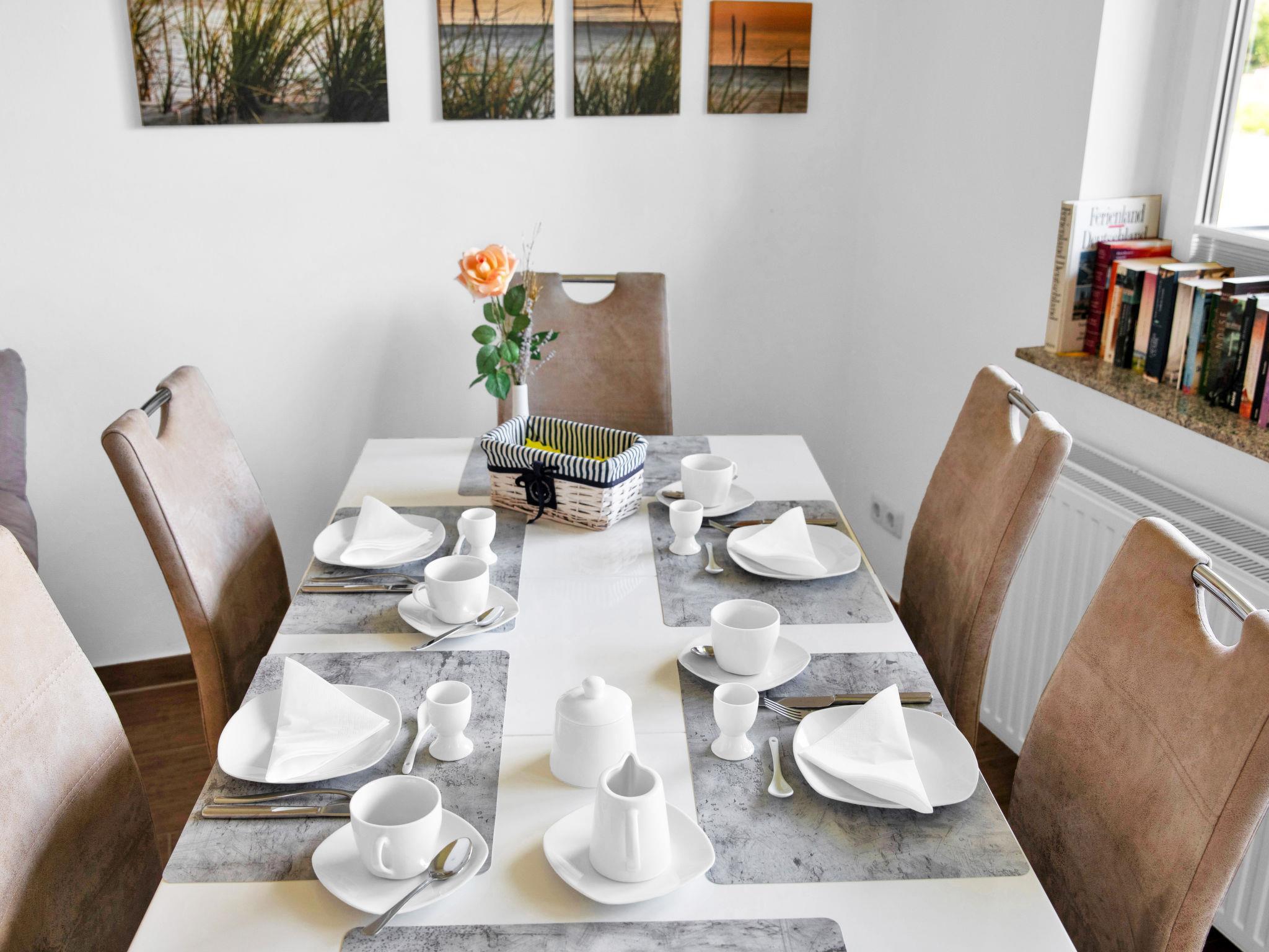 "Seeschwalbe", 3-room apartment 80 m2 on 1st floor. Cosy furnishings: living/dining room 28 m2 with 1 double sofabed (160 cm, length 200 cm), satellite TV (flat screen), CD-player and hi-fi system. Exit to the balcony. 1 room 14 m2 with 1 double bed (180 cm, length 200 cm). 1 room 12 m2 with 1 double bed (180 cm, length 200 cm). Exit to the balcony. Kitchen 8 m2 (oven, dishwasher, 4 ceramic glass hob hotplates, electric coffee machine) with small dining table. Bath/shower/WC. Small balcony 7 m2, large terrace 16 m2. Terrace furniture, balcony furniture, deck chairs (2). Facilities: Internet (WiFi, free). Please note: non-smokers only. Maximum 1 pet/ dog allowed. Smoke alarm, fire extinguisher. The balcony is covered. The second terrace offers direct sunlight all day long. Bicycle storage room (for shared use) on the property.