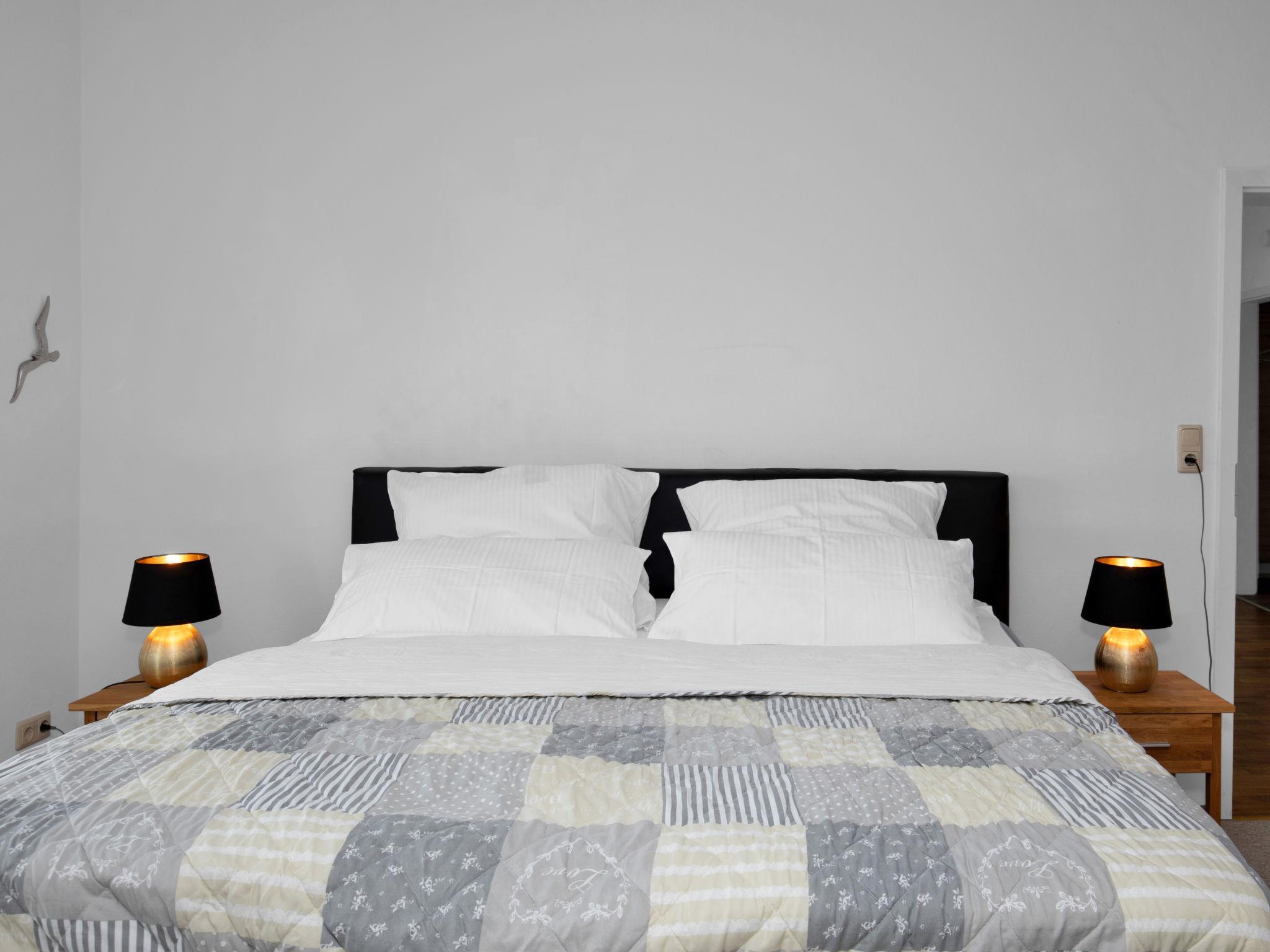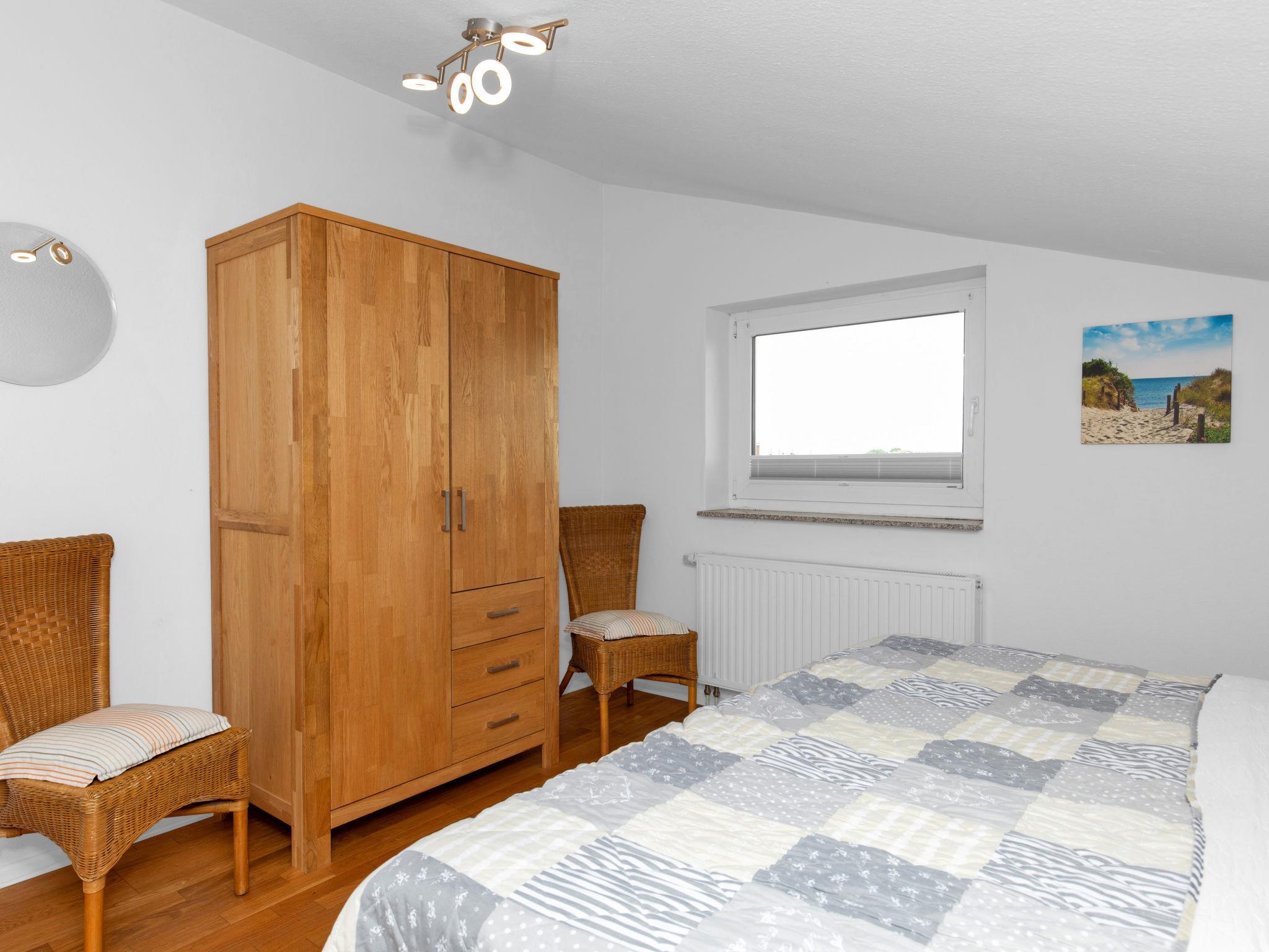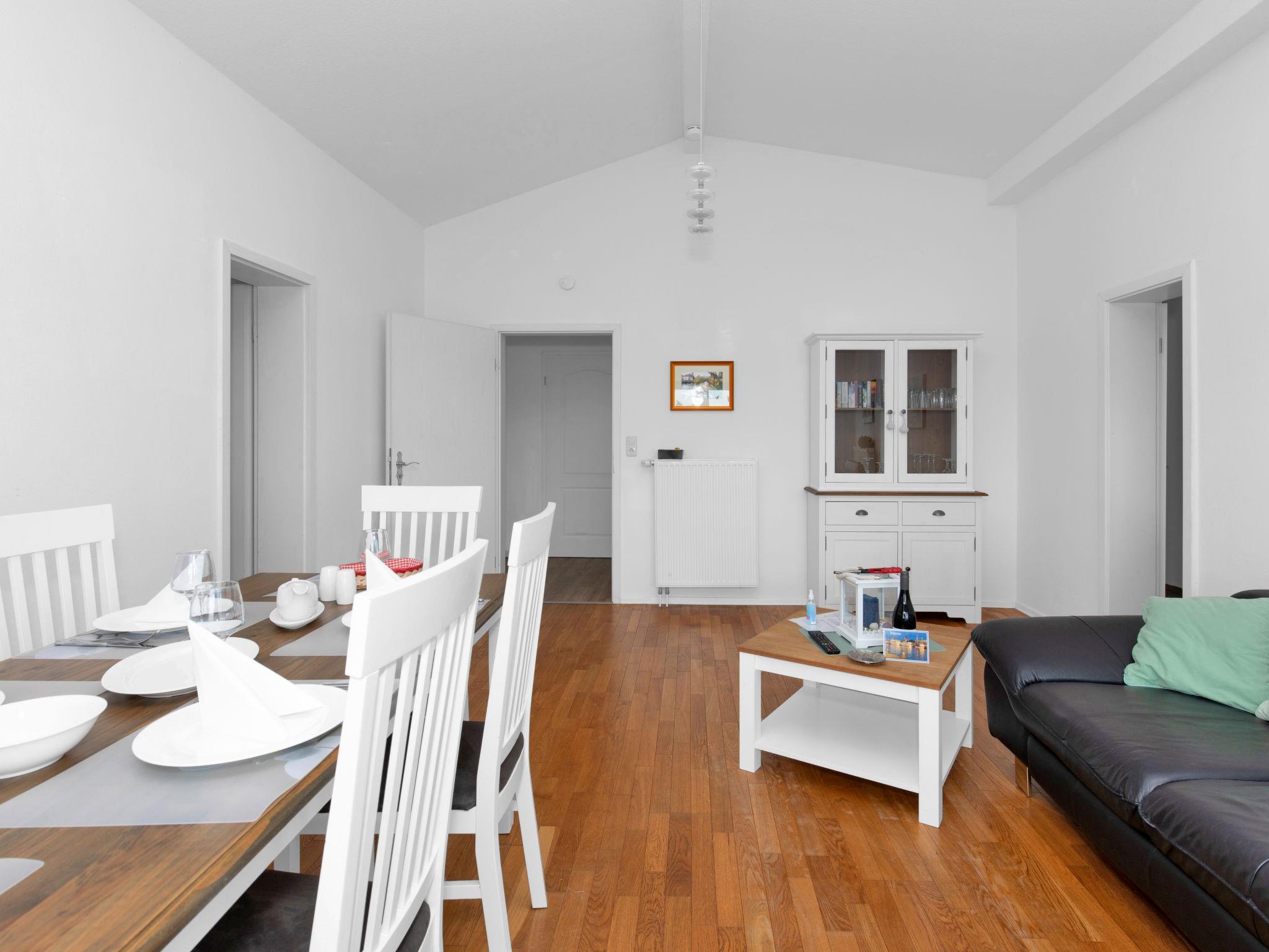 "Sturm", 3-room apartment 104 m2 on 2nd floor. Partly with sloping ceilings, cosy furnishings: living/dining room 23 m2 with 1 double sofabed and satellite TV (flat screen). Exit to the balcony. 1 room 30 m2 with 1 double bed (180 cm, length 200 cm), satellite TV (flat screen). 1 room 16 m2 with 2 beds (90 cm, length 200 cm). Kitchen 9 m2 (oven, dishwasher, 4 ceramic glass hob hotplates, microwave, electric coffee machine) with small dining table. Shower/WC, bath/shower/WC with corner bath. Large balcony 14 m2. Balcony furniture, deck chairs (2). Facilities: washing machine. Internet (WiFi, free). Please note: non-smokers only. Maximum 1 pet/ dog allowed. Smoke alarm, fire extinguisher. Bicycle storage room (for shared use) on the property.