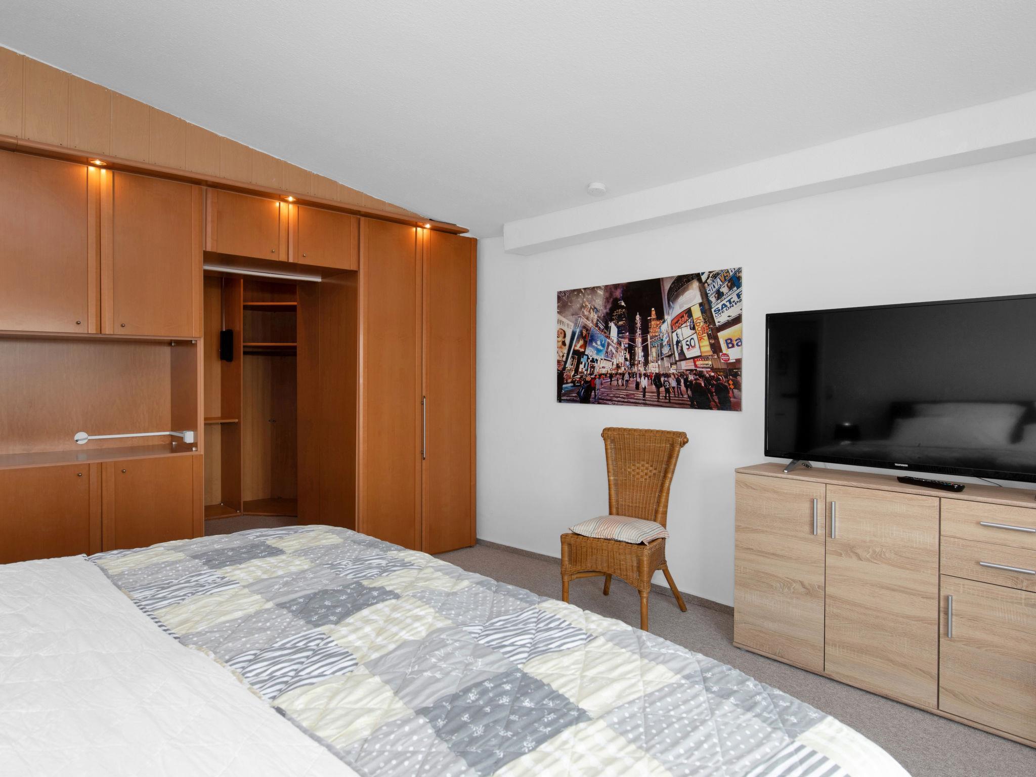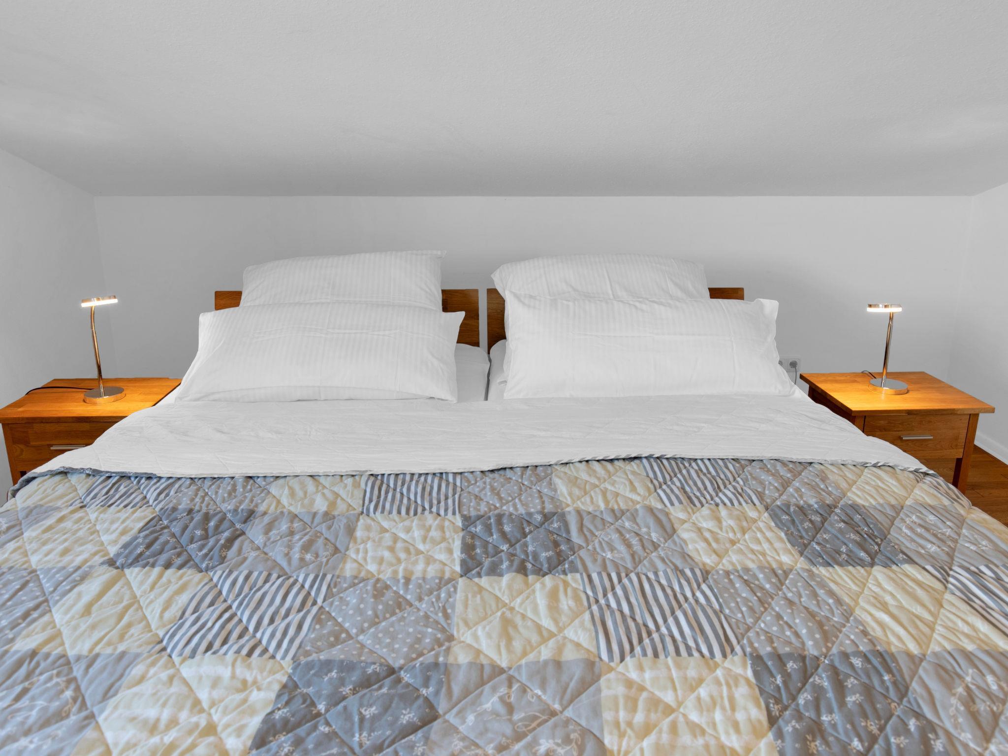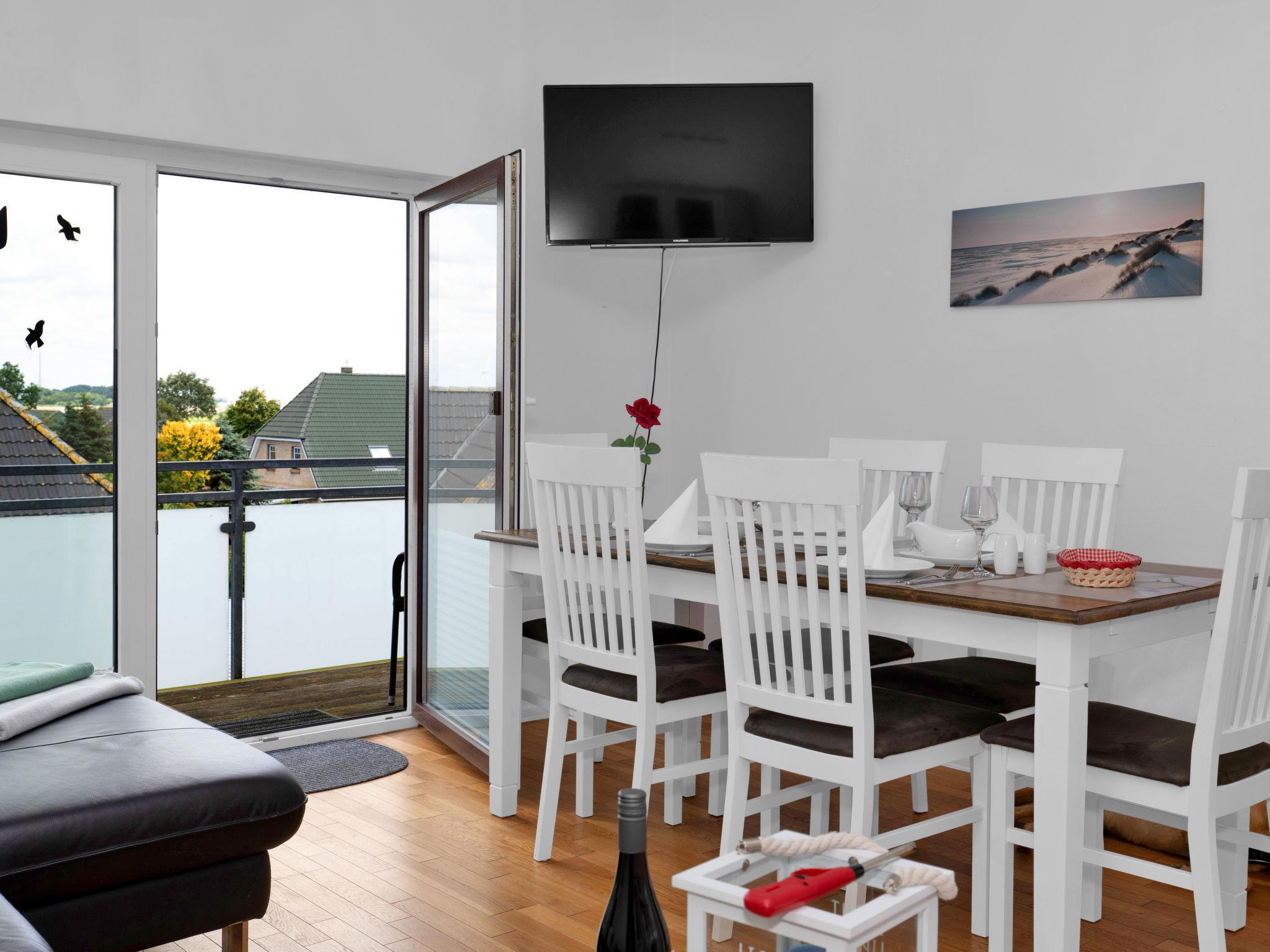 "Sturm", 3-room apartment 104 m2 on 2nd floor. Partly with sloping ceilings, cosy furnishings: living/dining room 23 m2 with 1 double sofabed and satellite TV (flat screen). Exit to the balcony. 1 room 30 m2 with 1 double bed (180 cm, length 200 cm), satellite TV (flat screen). 1 room 16 m2 with 2 beds (90 cm, length 200 cm). Kitchen 9 m2 (oven, dishwasher, 4 ceramic glass hob hotplates, microwave, electric coffee machine) with small dining table. Shower/WC, bath/shower/WC with corner bath. Large balcony 14 m2. Balcony furniture, deck chairs (2). Facilities: washing machine. Internet (WiFi, free). Please note: non-smokers only. Maximum 1 pet/ dog allowed. Smoke alarm, fire extinguisher. Bicycle storage room (for shared use) on the property.