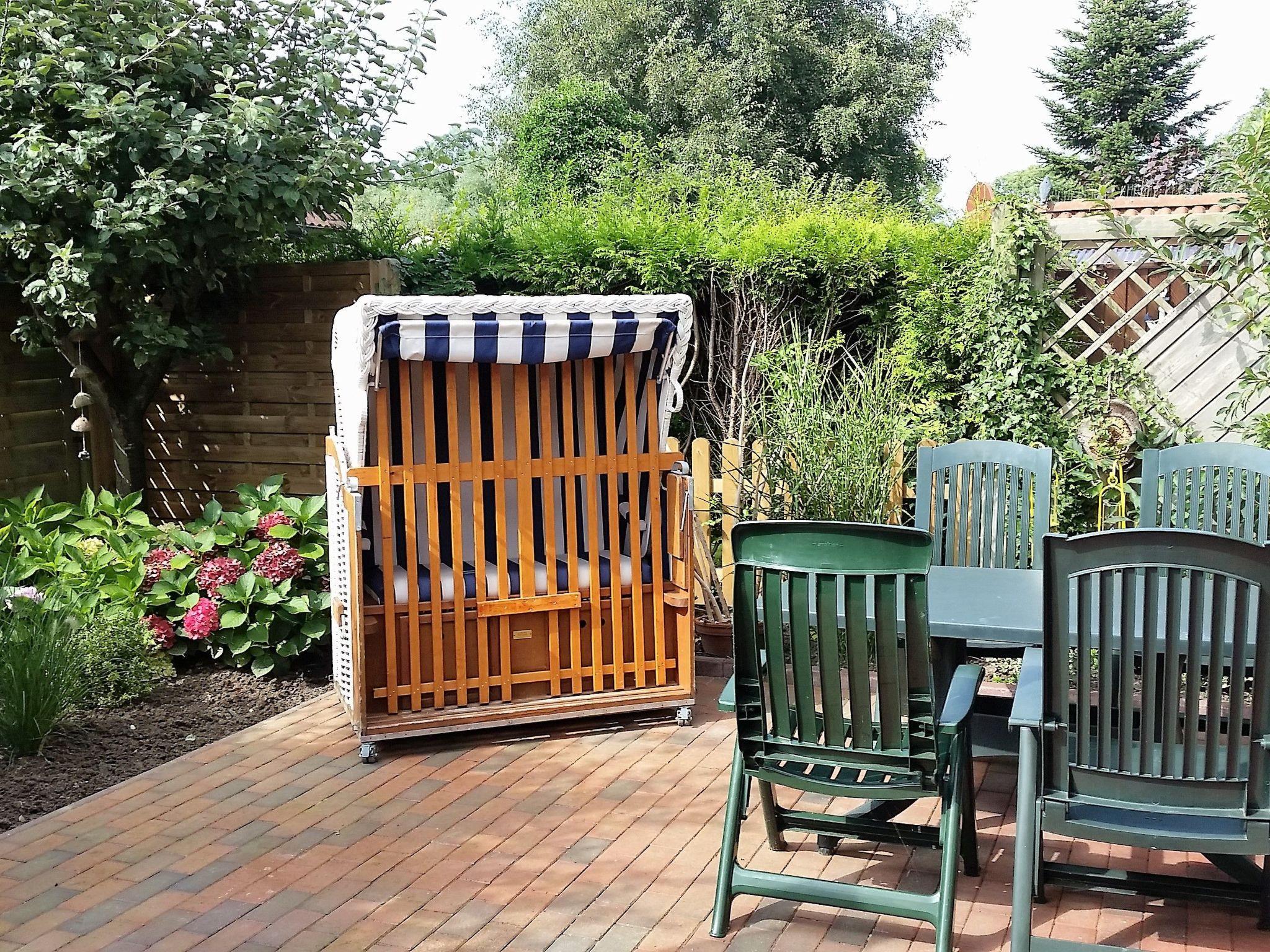The well-kept outdoor area of the flat with direct access from the living room and the adjoining bedroom invites you to spend idyllic hours in the open air. A private beach chair and a coffee table under the parasol in the private garden provide the perfect setting to unwind. Those who enjoy barbecuing will appreciate the small electric barbecue, while the garden furniture and cushions provided guarantee cosy hours outdoors.