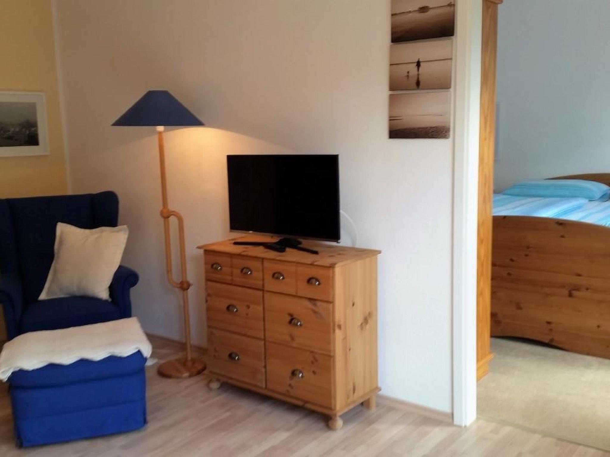 The approx. 60 m² holiday flat is perfectly equipped to offer up to 3 adults an extremely comfortable stay. A separate bedroom with a spacious double bed (180 x 200 cm) and plenty of storage space, a cosily furnished living room with an inviting seating area and a relaxing armchair, as well as a second, smaller bedroom for a third person, guarantee relaxing nights. The kitchen is fully equipped and includes a dishwasher, filter coffee machine and fridge with freezer compartment. Entertainment is provided by an 80 cm flat-screen TV with satellite connection and a small music system with CD player.