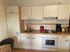 Im Raum befindet sich eine Einbauküche mit Kühlschrank, Kochfeld, Backofen, Wasserkocher und Kaffeemaschine sowie ein 40 Zoll LED Fernseher.