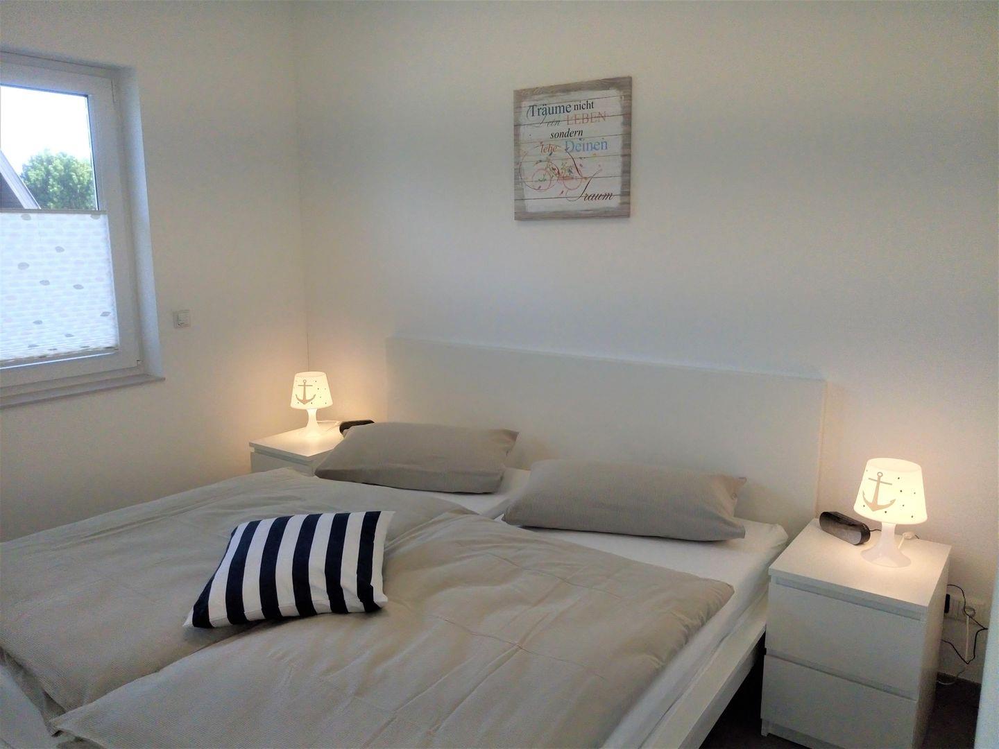 Das Haus verfügt über 2 Schlafzimmer. Eines mit einem Doppelbett und TV-Gerät und das andere mit 2 Einzelbetten. Ein Babyreisebett kann nur in dem Schlafzimmer mit den Einzelbetten aufgestellt werden. Selbstverständlich gibt es auch genügend Platz für Ihre Garderobe.