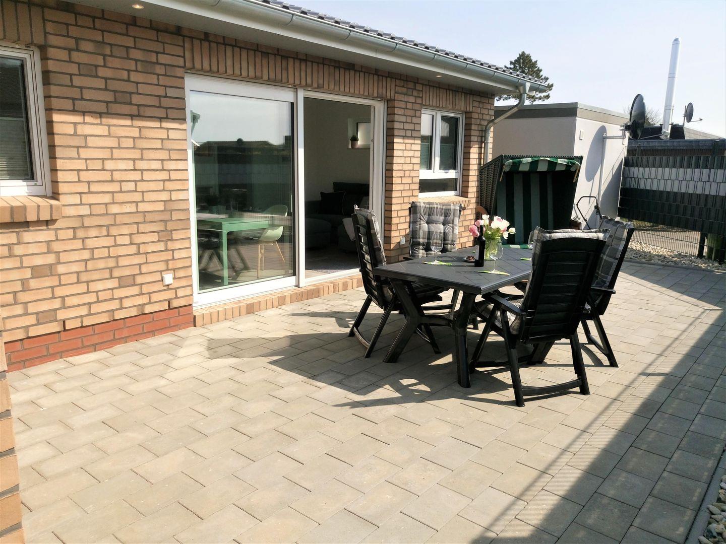 Sie werden Ihren Urlaub in diesem Haus genießen, wenn Sie auf der Sonnenterrasse, die hinter dem Haus liegt, nach einem Strandspaziergang an der Nordsee entspannen.