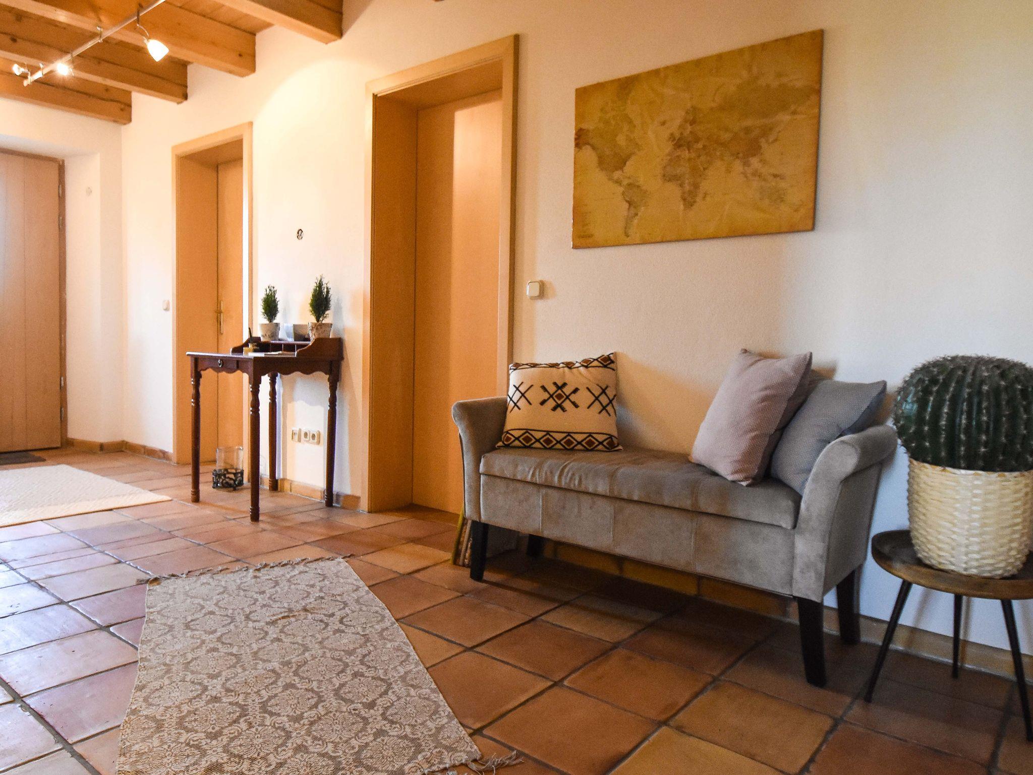 In einem Vorort der charmanten Altstadt Wasserburg a. Inn erwartet Sie unsere komfortable, liebevoll eingerichtete Chiemgauer Wohnung, die für zwei bis max. vier Personen konzipiert ist, mit separatem Hauseingang. Die Wohnung befindet sich im Erdgeschoss eines mediterranen Einfamilienhauses, mit eigener Terrasse inkl. Grill. Vor dem Haus stehen ein kostenloser Parkplatz, sowie Fahrräder zum Verleih zur Verfügung. Direkt vom Haus aus kann man sich auf die Jogging-, Fahrrad- oder Spazierstrecke begeben und die Natur, Wiesen und Felder genießen. Unsere Ferienwohnung bietet eine exzellente Anbindung an den öffentlichen Nahverkehr. Busse und Züge sind in wenigen Schritten erreichbar.