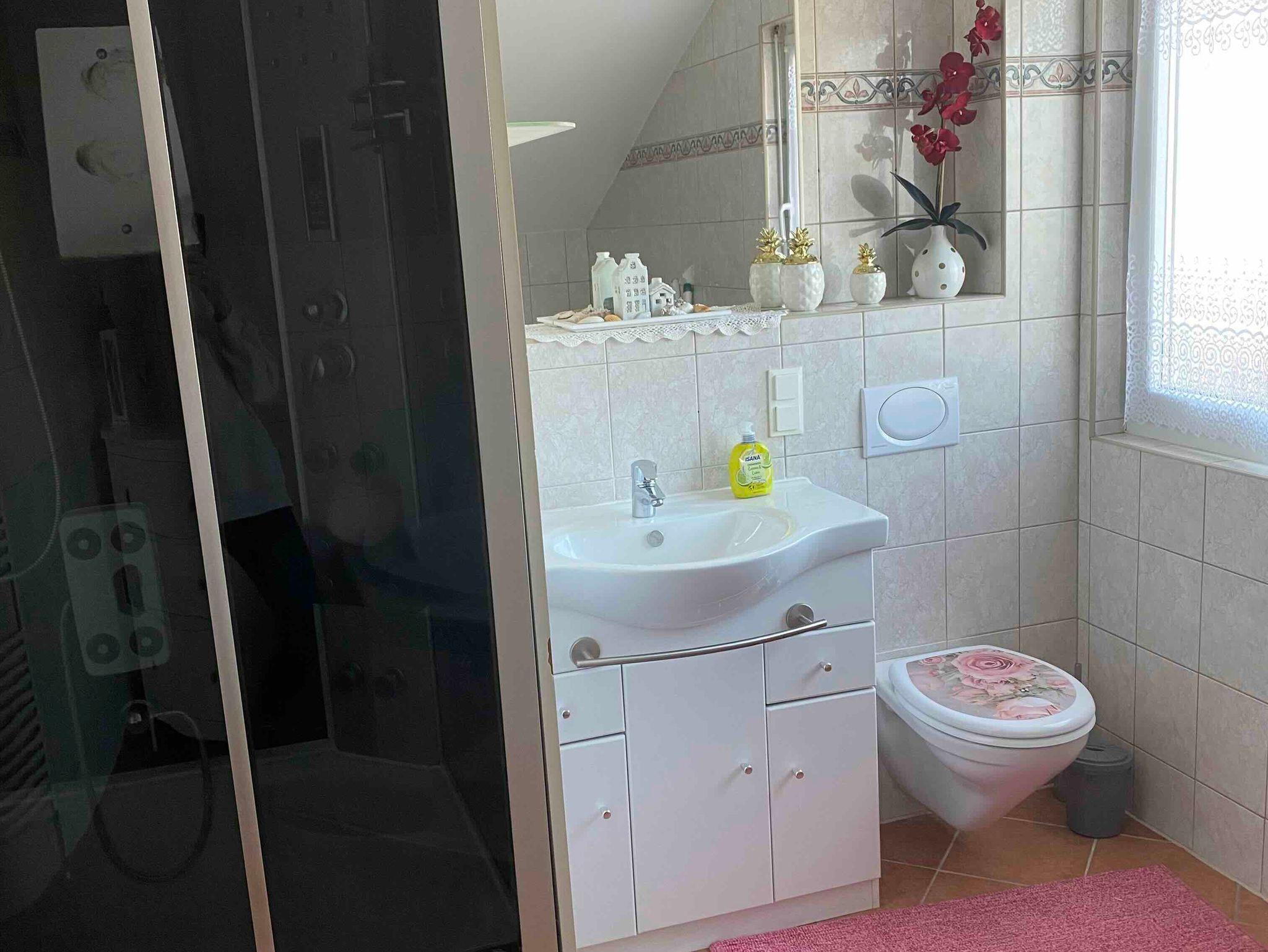 Im geschmackvoll eingerichteten Badezimmer können Sie sich nach einem aktiven Radlausflug entspannen. Genießen Sie ein erholsames Bad in der großen Badewanne oder nutzen Sie die praktische Dusche.