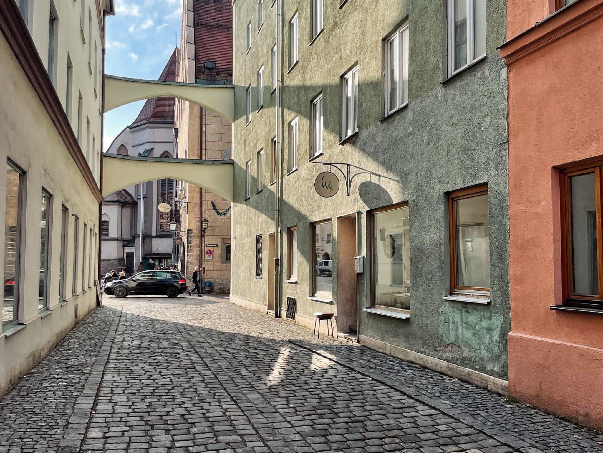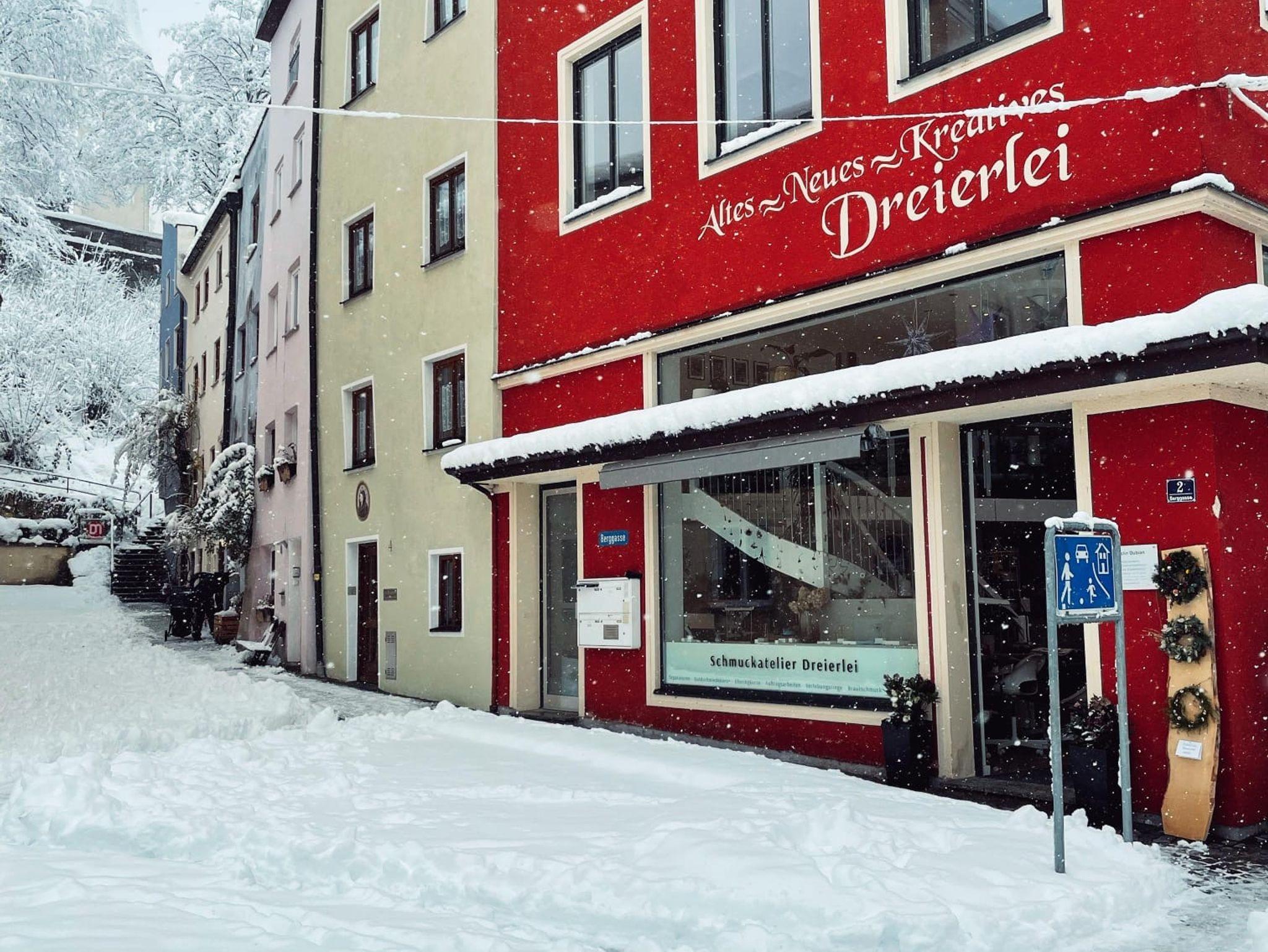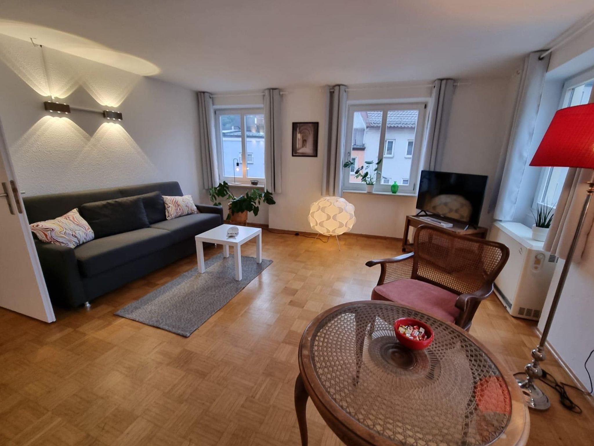 Die exponierte Ecklage ist für ein Haus in Wasserburg eine seltene Besonderheit. Das Tageslicht fällt durch vier große Fenster ins Wohnzimmer, was nicht nur Helligkeit garantiert, sondern auch einen wunderschönen Blick auf die Ledererzeile, die Stadtpfarrkirche Sankt Jakob und umliegende Altstadthäuser bietet.