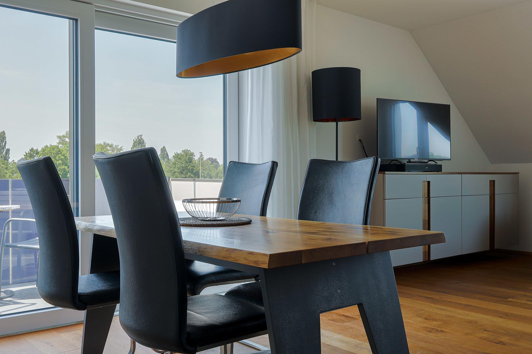 In der 3 Raum-Nichtraucher-Wohnung "Mittagspitze" geniesen sie das Alpenpanorama mit Sicht zur Mittagspitze bei gutem Wetter. Die Kulisse des nahen Seeufers und die Obstbäume bringen spontanes Urlaubsgefühl. Der offene Wohn- Essbereich bietet mit einem total gemütlichen Relaxsessel und einem Ecksofa genügend Raum für Entspannung. Am Esstisch kann eine große Schiebetüre zum 5 qm Balkon geöffnet werden. Mit 75 qm Wohnfläche bietet diese Wohnung 4 ständige Betten. Bei einer 6 Personen Belegung wird das Sofa im Wohnbereich mit einem Handgriff zum Schlafplatz mit separater Matratze 160×200 cm für 2 Personen. Weiter ist ein Schlafzimmer mit 180×200 cm Bett, Schreibtisch und viel Stauraum in den Schränken und ein 2. Schlafzimmer mit 2 Betten und einem Kleiderschrank vorhanden. Die Einbauküche im offenen Wohnbereich verfügt über Cerankochfeld, Backofen, Mikrowelle und Geschirrspüler. Das Bad ist mit einer Dusche und einer großen Badewanne ausgestattet. 2 TV Geräte, Bose Sound-Kompaktanlage, geölte Holzparkettböden und Möbel vom Schreiner geben der Wohnung ihre individuelle Note.