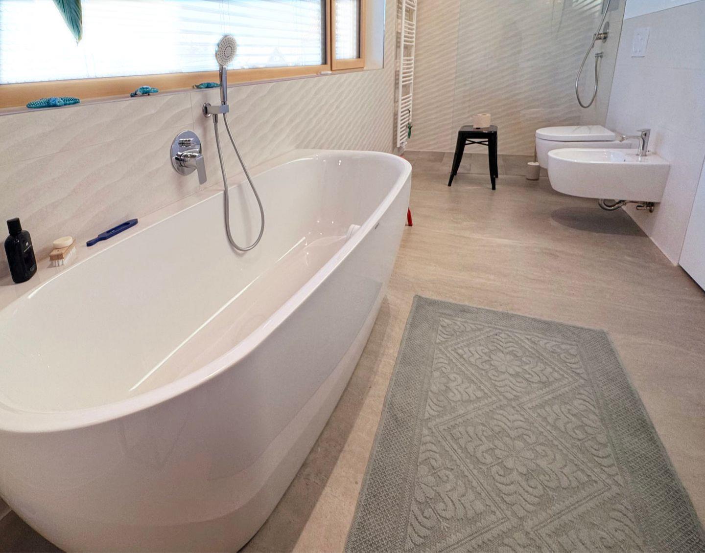 Im ersten Obergeschoss erwarten Sie zwei stilvolle Schlafzimmer jeweils mit komfortablem Doppelbett. Ein Schlafzimmer verfügt zusätzlich über ein Sofa und einen Fernseher. Das exklusive Badezimmer überzeugt mit Badewanne, begehbarer Dusche, WC und Bidet – ein Ort der Entspannung.