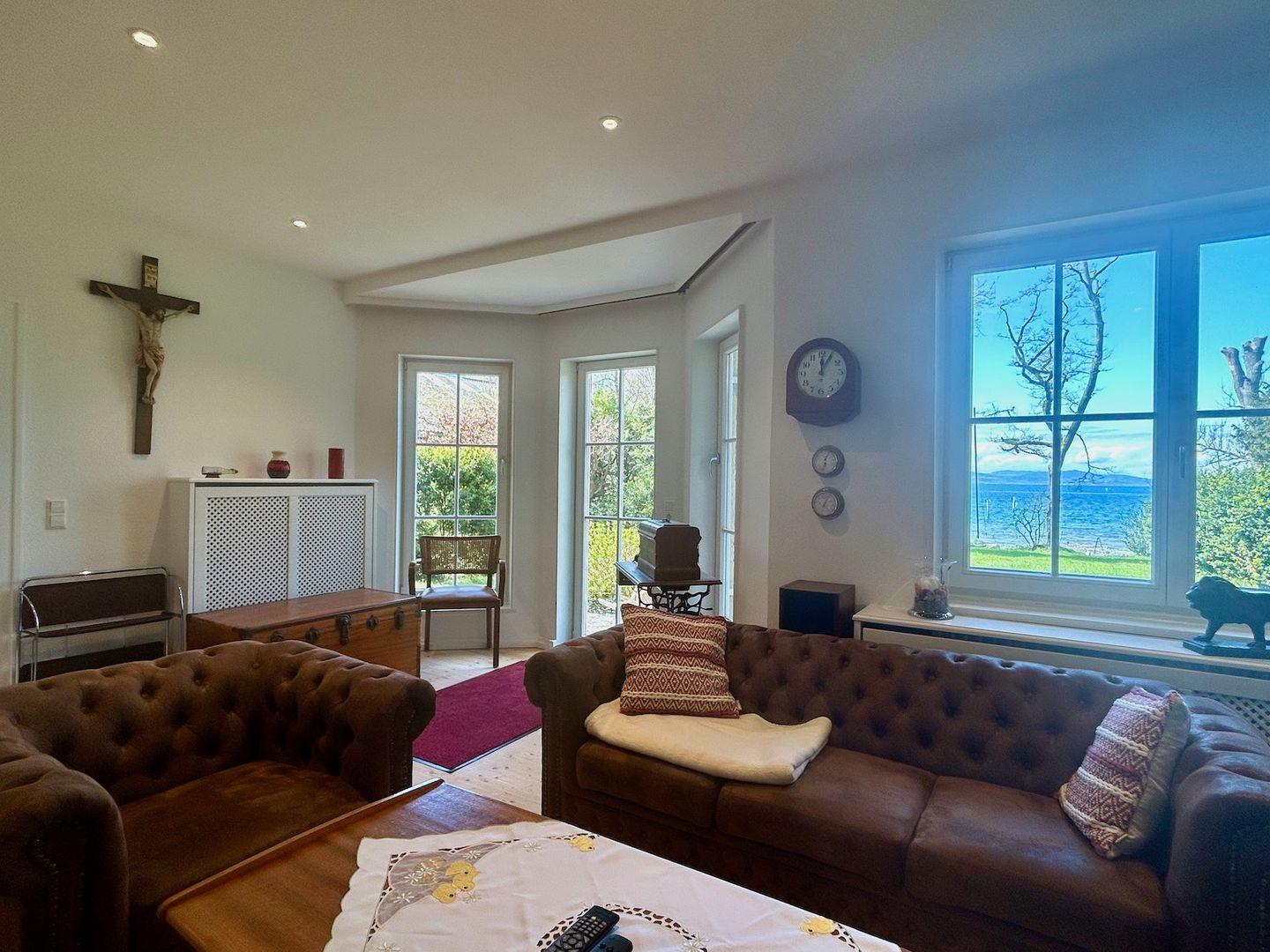 Ein einzigartiges Ferienhaus mit direktem, privaten Seezugang, großer Spielwiese und Panorama-Blick in die Alpen, Sonnenuntergang über dem See und der Halbinsel Wasserburg! Geeignet für max. 8 Personen (4 Erwachsene und bis zu 4 Kinder).