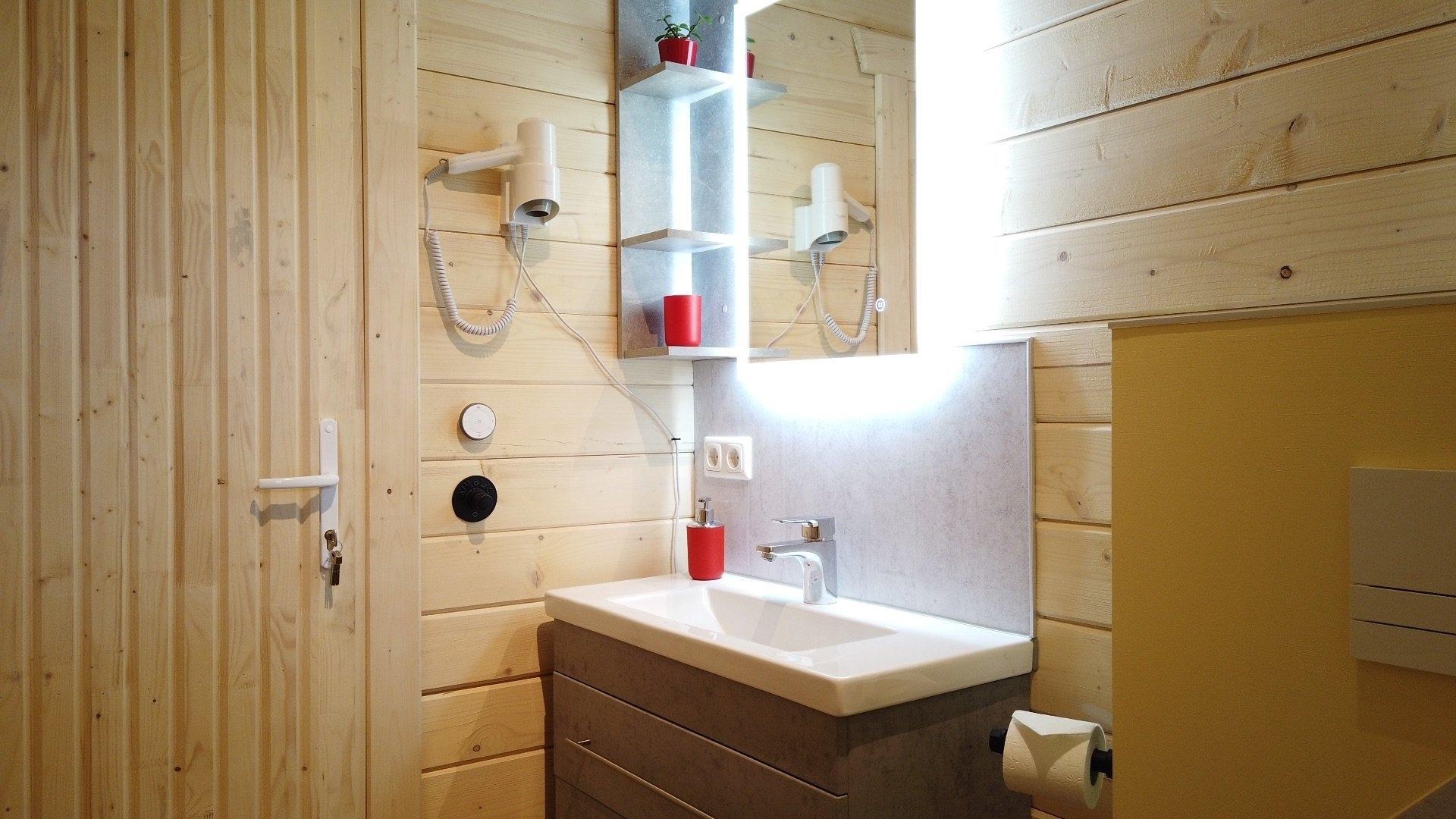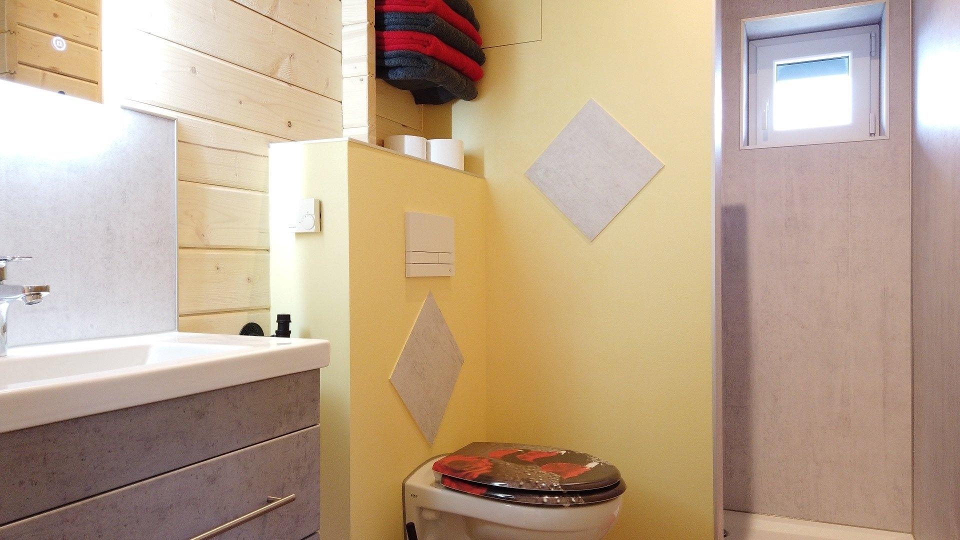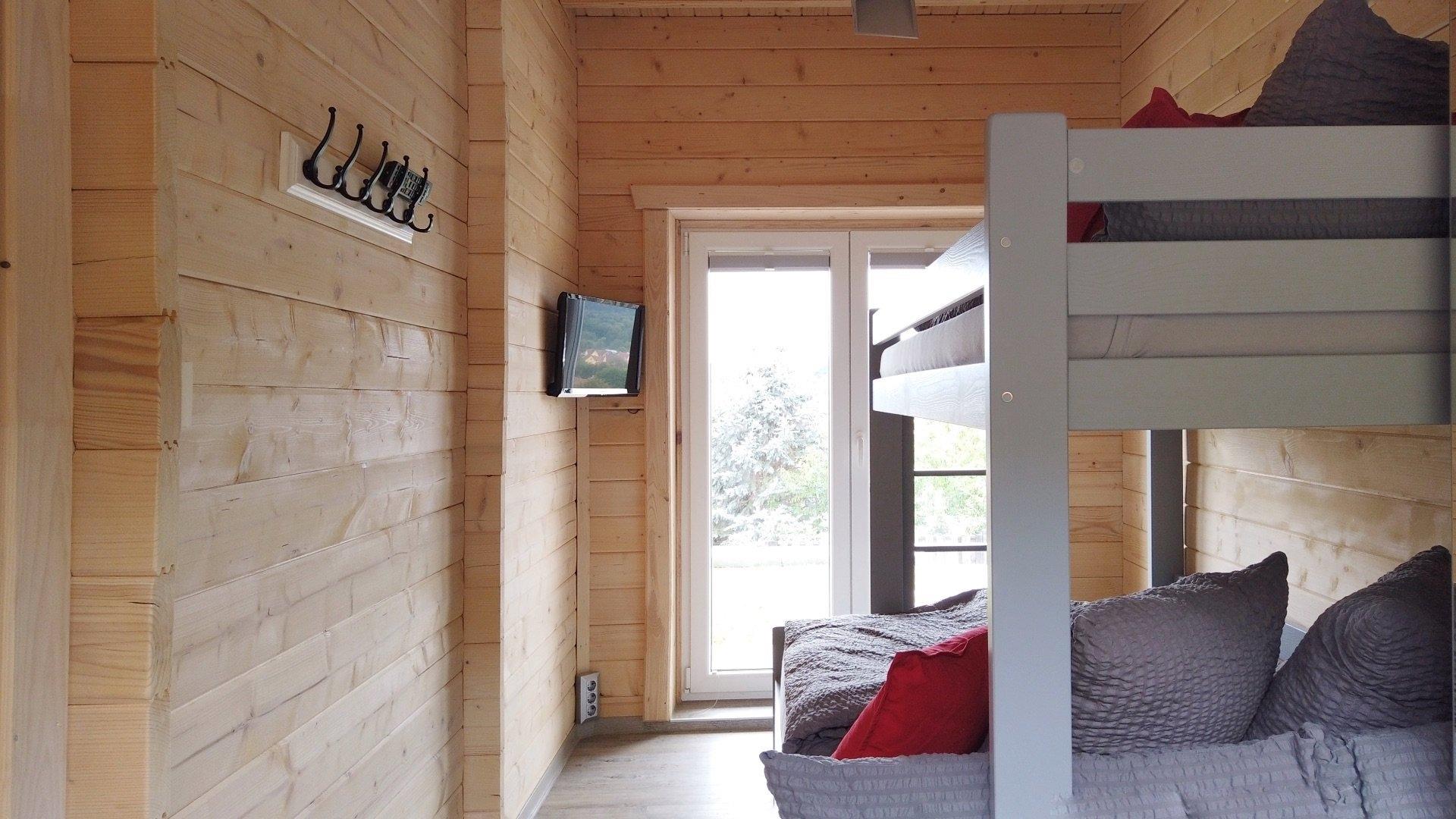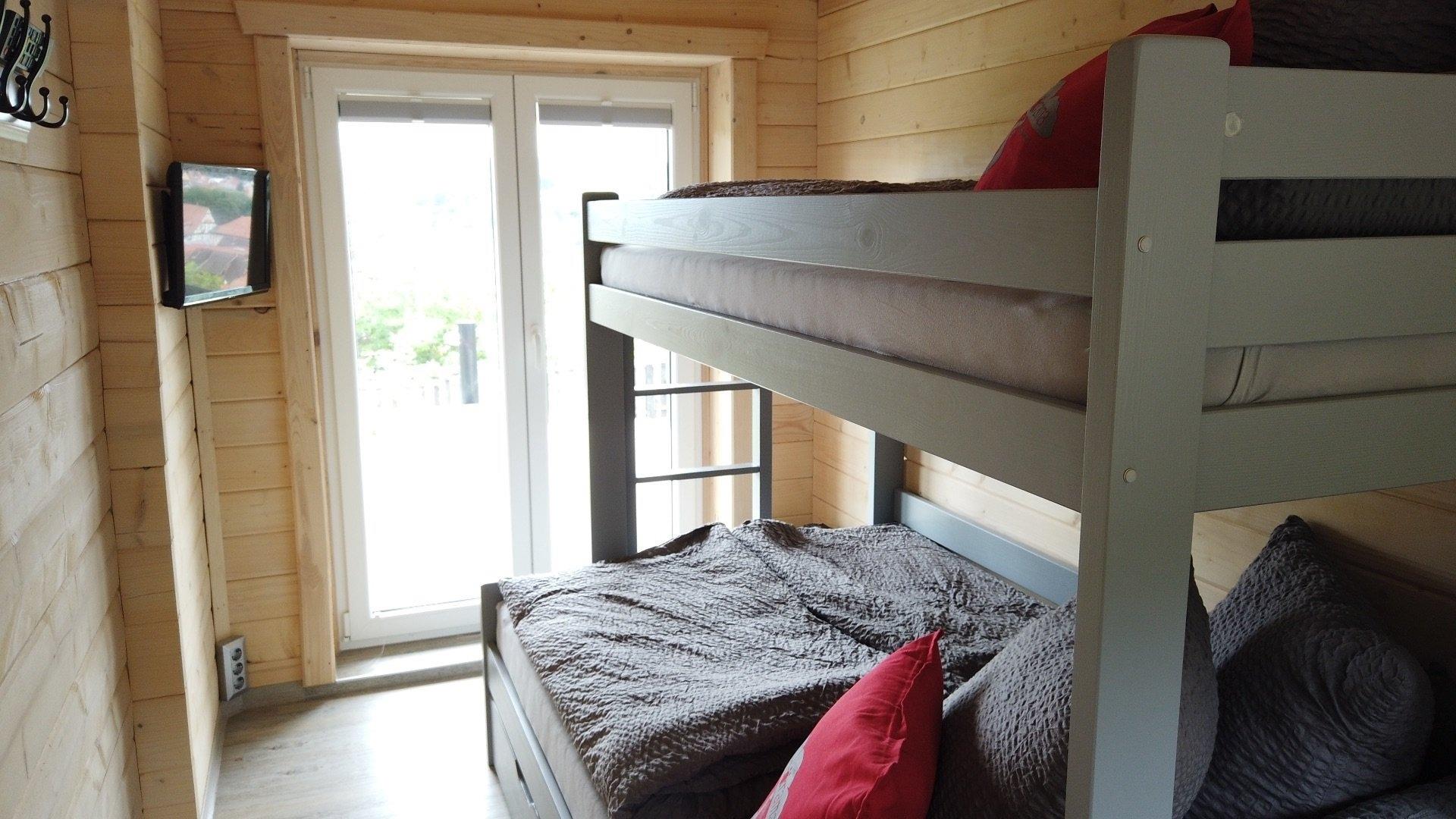 Ihr Ferienhaus besteht aus einem Wohnzimmer mit voll ausgestatteter Küchenzeile, einem großen TV-Flachbildschirm, sowie einem ausziehbaren Esstisch für die ganze Familie. Ein gemütliches Ecksofa ergänzt die Ausstattung. Weiterhin gibt es ein Bad mit Walk-In-Dusche und Hotelföhn, ein Schlafzimmer mit einem französischen Boxspringbett, sowie ein Schlafzimmer mit Familien-Etagenbett (120 cm unten/ 90 cm oben). Die beiden Schlafzimmer verfügen jeweils über einen geräumigen Kleiderschrank sowie einen TV-Flachbildschirm.