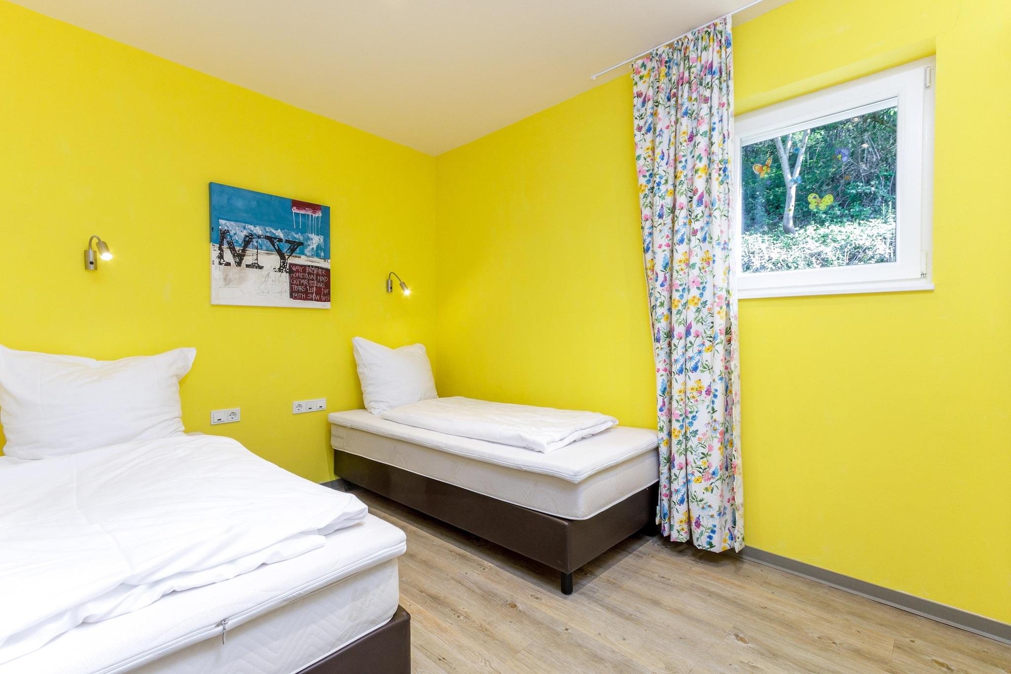 Denne fredelige bungalow med 3 soveværelser i Waxweiler har plads til op til 6 gæster og ligger smukt beliggende i bjergskråningen. Med en rummelig terrasse, pejs og to moderne badeværelser er den designet til komfort og afslapning. Det fuldt udstyrede køkken gør det nemt at lave mad selv, mens nærliggende restauranter tilbyder fristende lokal mad. Beliggende ved indgangen til vandre- og cykelstier er hjemmet ideelt for naturelskere og aktive rejsende. Solbadeplænen, det indendørs legehus, den udendørs legeplads og hoppeborgen giver ekstra sjov for familier. Beliggende i hjertet af den tysk-luxembourgske naturpark tilbyder Waxweiler en rolig oase med grænseoverskridende charme. Bemærk venligst: Bungalowen er kun reserveret til private og turister, ikke til arbejdstagere eller forretningsbrug. Bemærk: Swimmingpool (deles med andre gæster, åben fra maj til og med september).