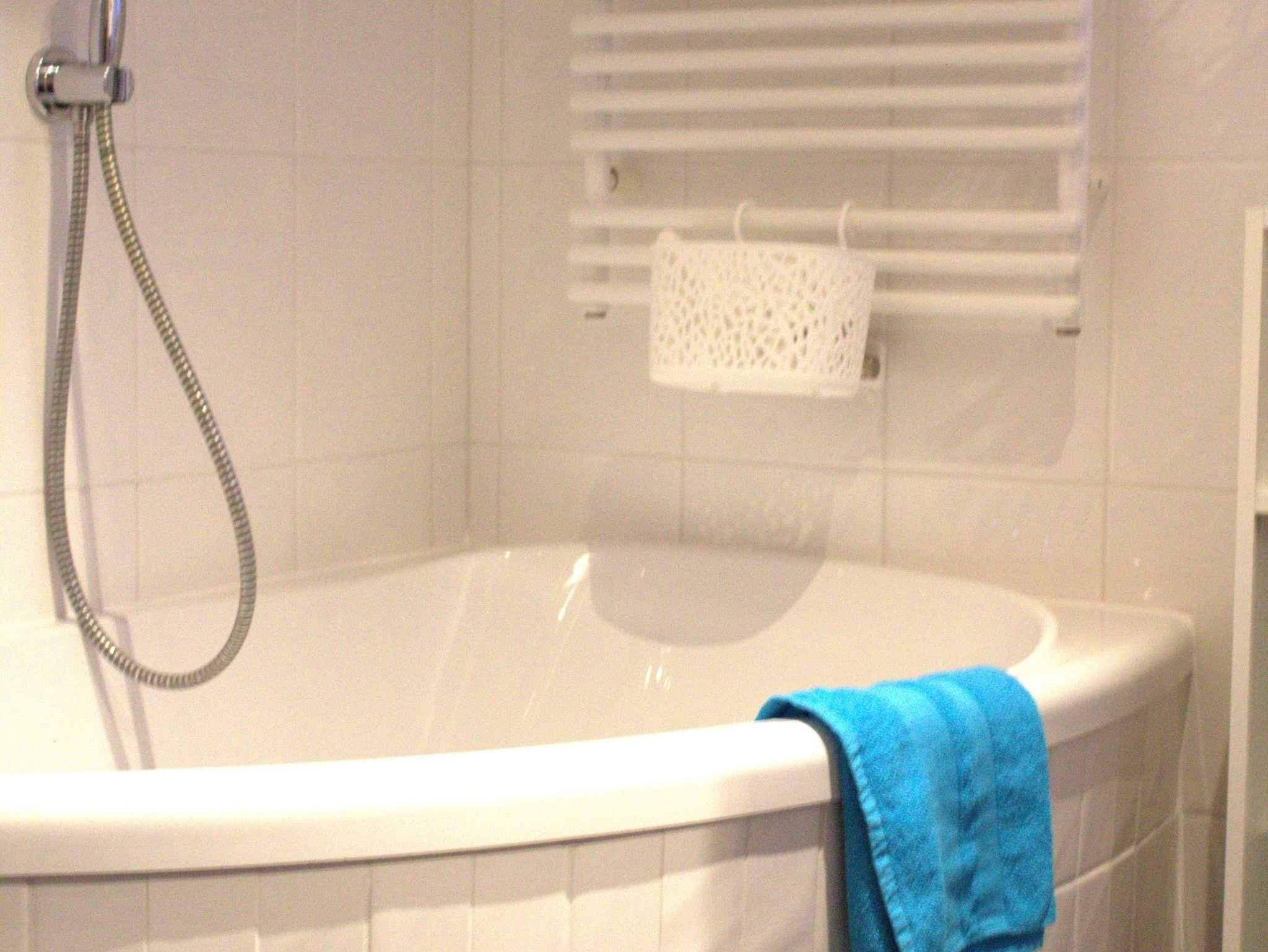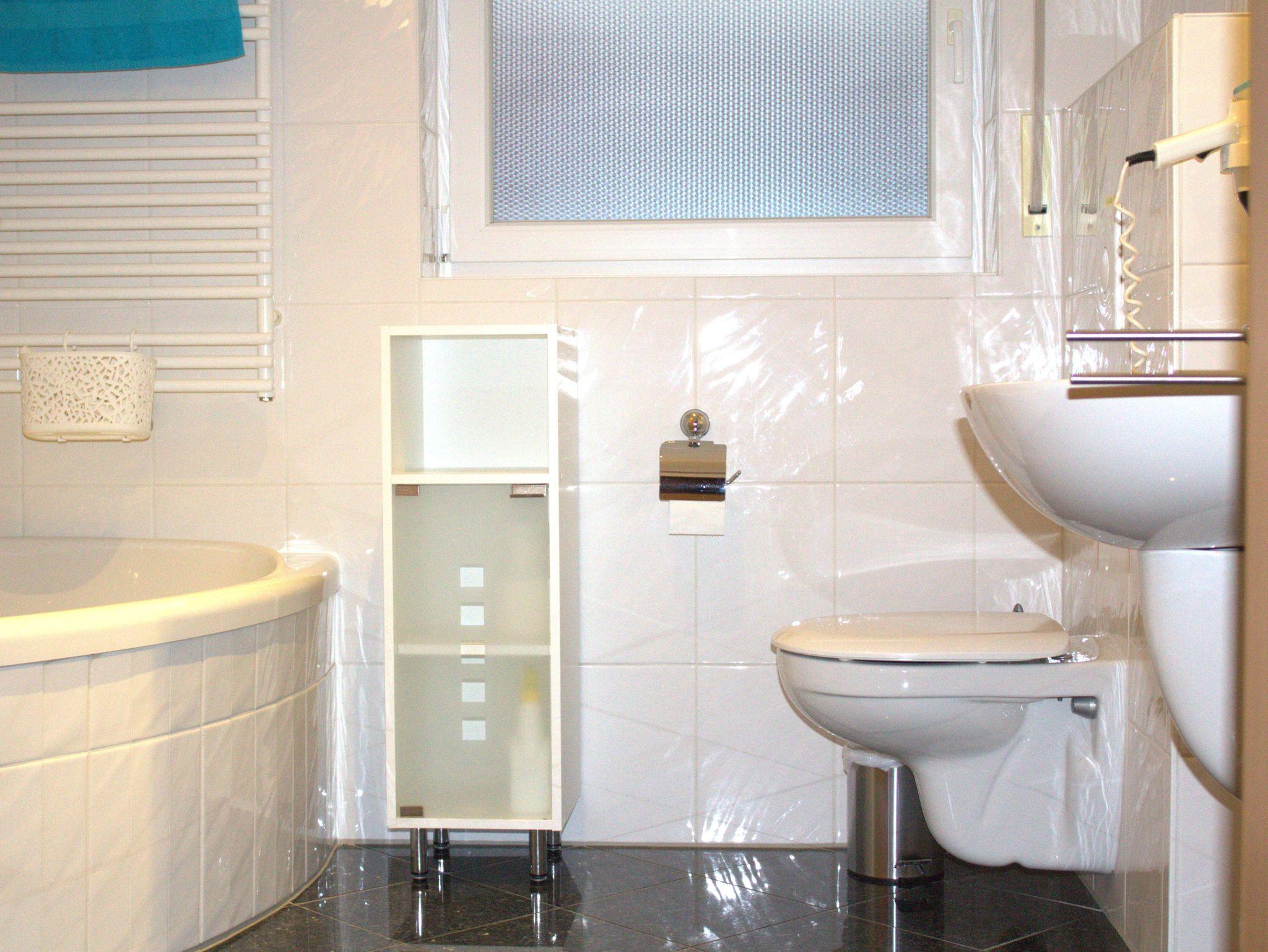 Die beiden Schlafzimmer sind mit Doppelbetten in 1,80 und 1,40 Breite x 2,00 m ausgestattet. Es gibt ein Bad mit Wanne und Dusche und ein Gäste-WC.