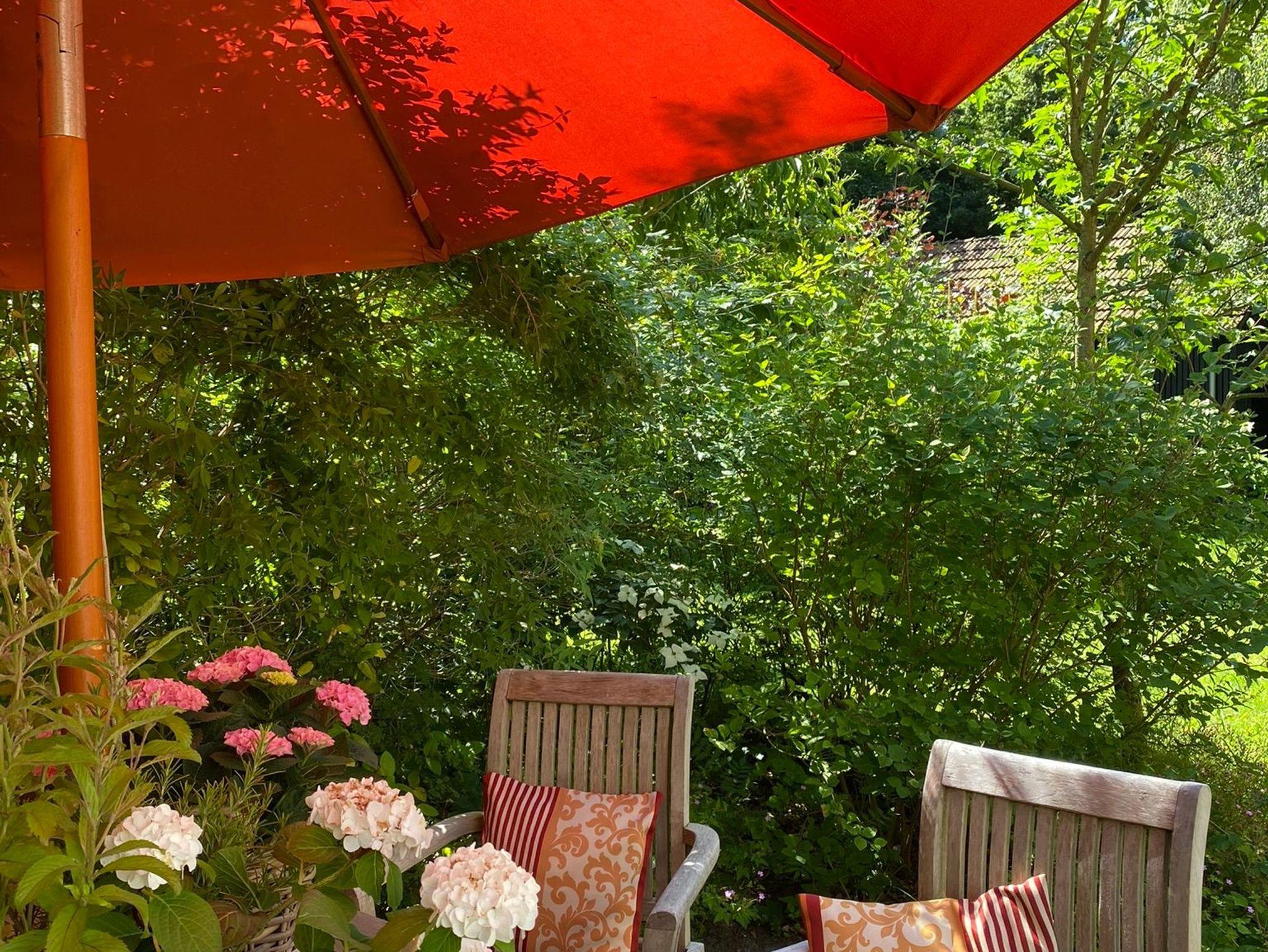 Die Terrassen mit Holzgartenmöbeln, sowie Grillmöglichkeiten stehen Ihnen ebenso zur Verfügung wie unser Gartenhaus mit Tischtennis und Kicker.