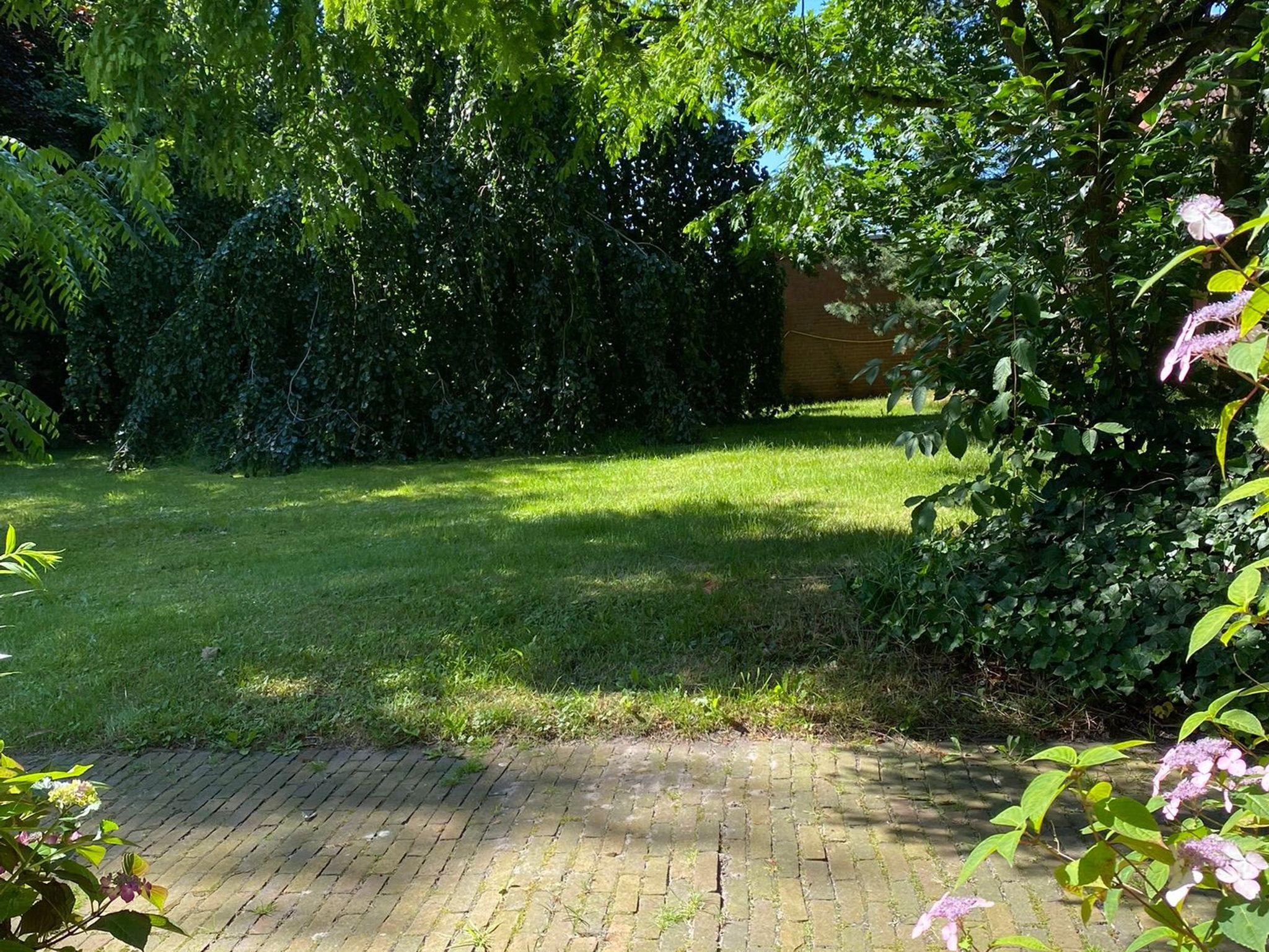 Gartenliegen und ein Strandkorb bieten Erholungsmöglichkeiten im großen Garten.