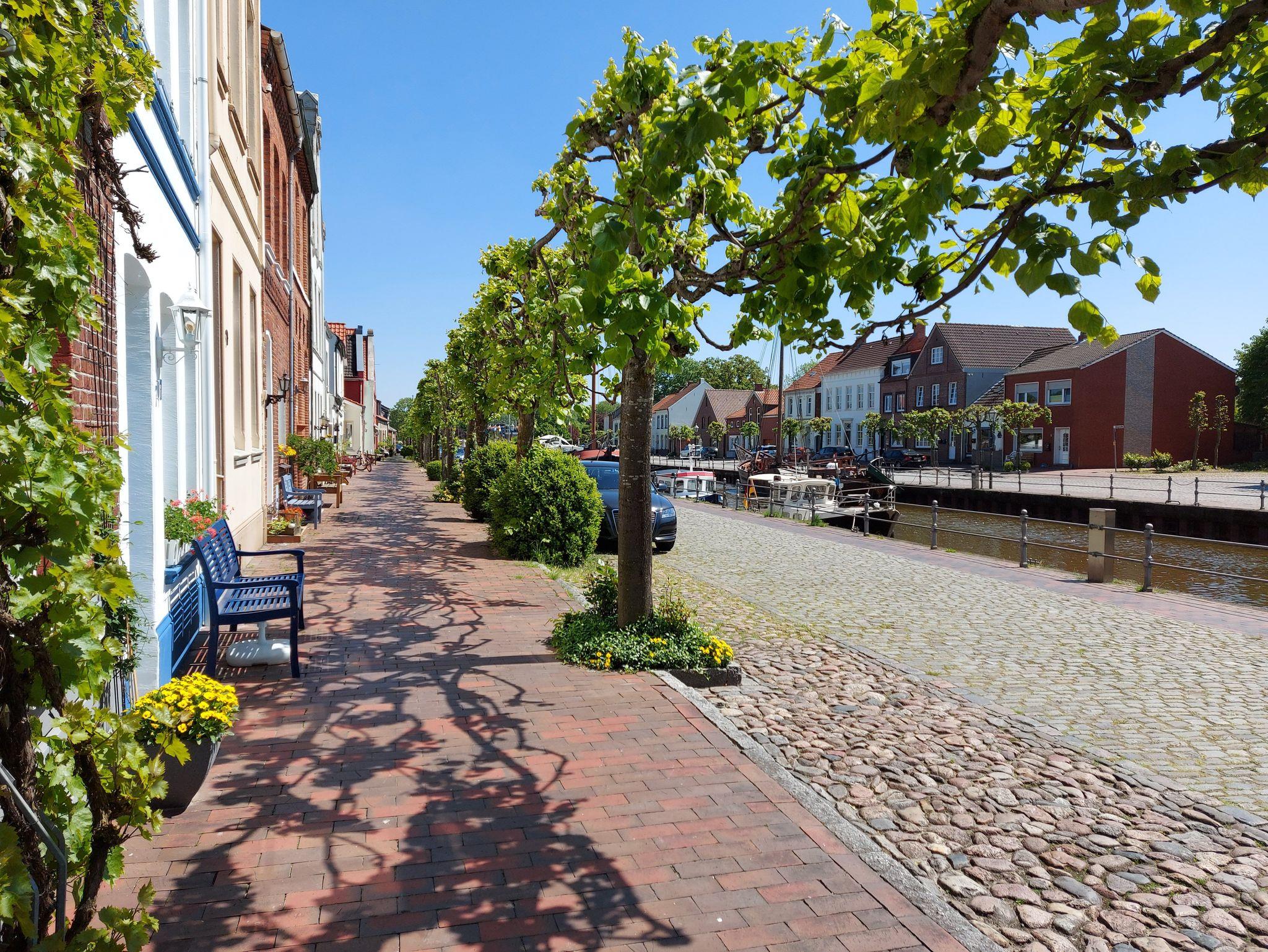 Neu renovierte Ferienwohnung in einem denkmalgeschützten Haus aus dem Jahr 1860 im historischen Zentrum in Weener mit tollem Ausblick auf die schöne Georgskirche.