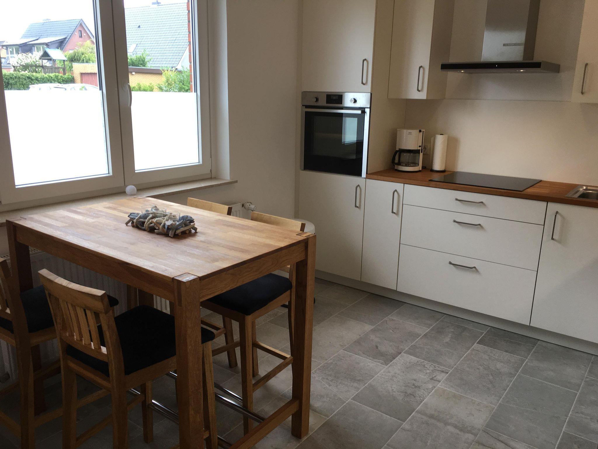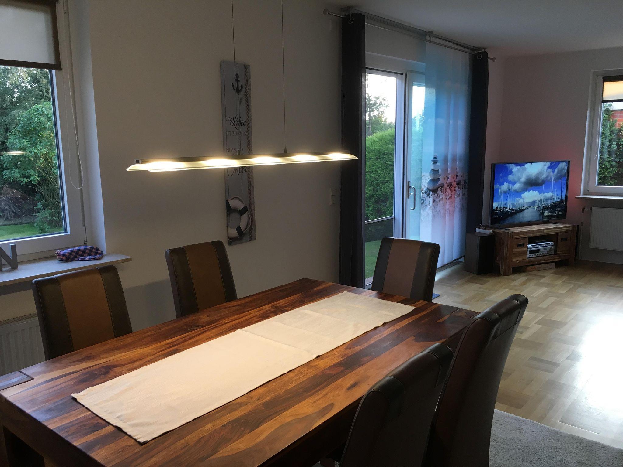 Die komplett renovierte und hochwertige eingerichtete Ferienwohnung Kajüte liegt im Erdgeschoss des Ferienhauses mit Dielen- bzw. Parkettfußboden in Wohn- und Schlafzimmern, einer umfassend ausgestatteten Einbauküche mit Induktionskochfeld und einen großen Garten mit Terrasse plus überdachten Bereich mit Markise. 2 Schlafzimmer mit Doppelbett, das große Wohnzimmer mit Essbereich, gemütlicher Wohncouch und Flachbildschirm, und ein Bad mit großer Dusche, Badewanne und WC sorgen für Wohlfühlatmosphäre. Die Küche mit Kühlschrank, Gefrierschrank, Geschirrspüler, Backofen, Induktionskochfeld und Essplatz, der Garten mit einer großen – und zum Teil überdachten -Terrasse zur alleinigen Nutzung und der PKW Stellplatz am Haus komplettieren die Ausstattung.