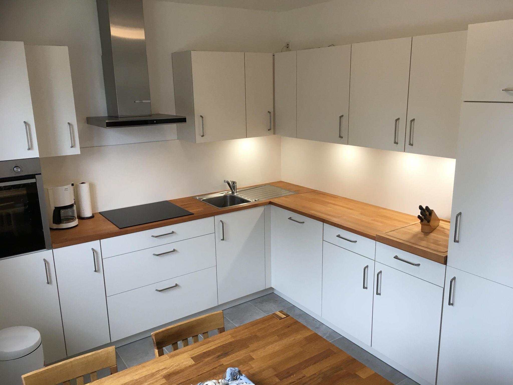 • 1 Küche mit Kühlschrank, Gefrierschrank, Geschirrspüler, Backofen, Induktionskochfeld und Essplatz