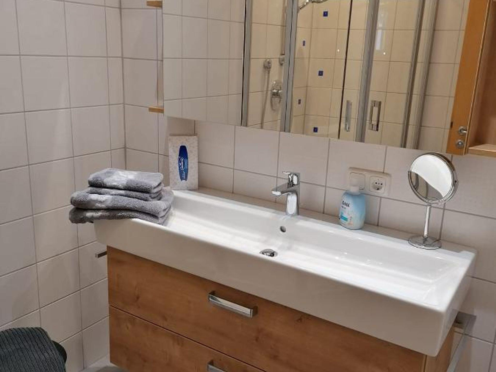Die Ferienwohnung Woidblick ( 65m² ) mit Balkon befindet sich im 2. Stock. Das erste Schlafzimmer ist mit einem Boxspringbett und